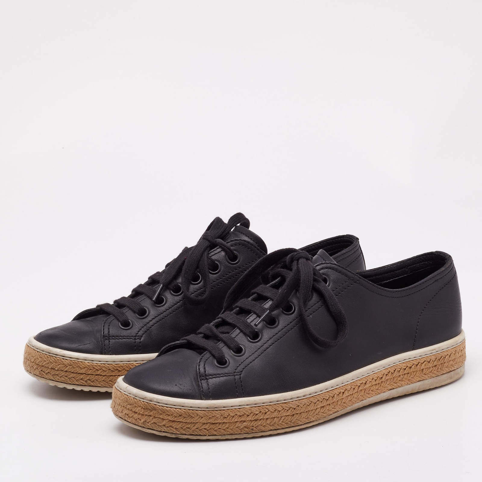 Clean and classy, these sneakers bring a luxe edge to casual dressing. With their sleek design and attention to detail, they’re the kind of pair you’ll reach for again and again.Certified by The Luxury Closet - This item has gone through a detailed authentication process overseen by our experts. We offer a lifetime guarantee of authenticity on all our items. Import duties, taxes and charges are not included in the item price. These charges are the buyers responsibility. Please check with your country’s customs office to determine what these additional cost will be prior to buying. Our eBay Store About Us Contact Us Add to Favorite Sellers Prada Sport Black Perforated Leather Lace Up Sneakers Size 42.5 $203.5 Clean and classy, these sneakers bring a luxe edge to casual dressing. With their sleek design and attention to detail, they’re the kind of pair you’ll reach for again and again. Product Details Brand Color Black Dimensions Material Leather Size 42.5 Outsole Width 10 cm Outsole Length 31 cm Heel Height Includes The Luxury Closet Packaging Certified by The Luxury Closet This item has gone through a detailed authentication process overseen by our experts. We offer a lifetime guarantee of authenticity on all our items. How We Check The in-house team of experts at The Luxury Closet is highly trained to verify the authenticity and the condition of the luxury products. They ensure that only 100% authentic items are put on sale.The evaluation process is unique with its own mix of assessment criteria and differs according to the category. Each item is evaluated based on the following combination of hallmarks, hardware, stitching, symmetry, material, craftsmanship, stamping, codes, hologram stickers, and packaging. Our authenticators also check if the items have been modified or amended (e.g., aftermarket diamonds, replaced batteries, repaired bags, etc.) International Buyers Import duties, taxes and charges are not included in the item price. These charges are the buyers responsibility. Please check with your country’s customs office to determine what these additional cost will be prior to buying.