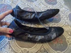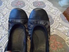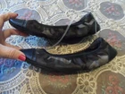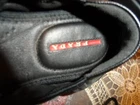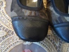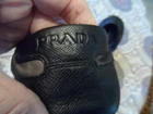 These stylish ballet flats feature a green and black camouflage-print canvas with luxurious leather accents. Designed with an elasticated top trim for a snug fit, they showcase the iconic Prada logo on the vamp, back heel, and soles. The leather-lined interior, cushioned footbed, and cap-toe design ensure comfort and elegance. Crafted in Italy, these size 7 flats combine sporty flair with timeless sophistication. SIze 7B. In excellent pre-own condition. These shoes were only worn twice! Retail for $950. Come from a smoke free home.