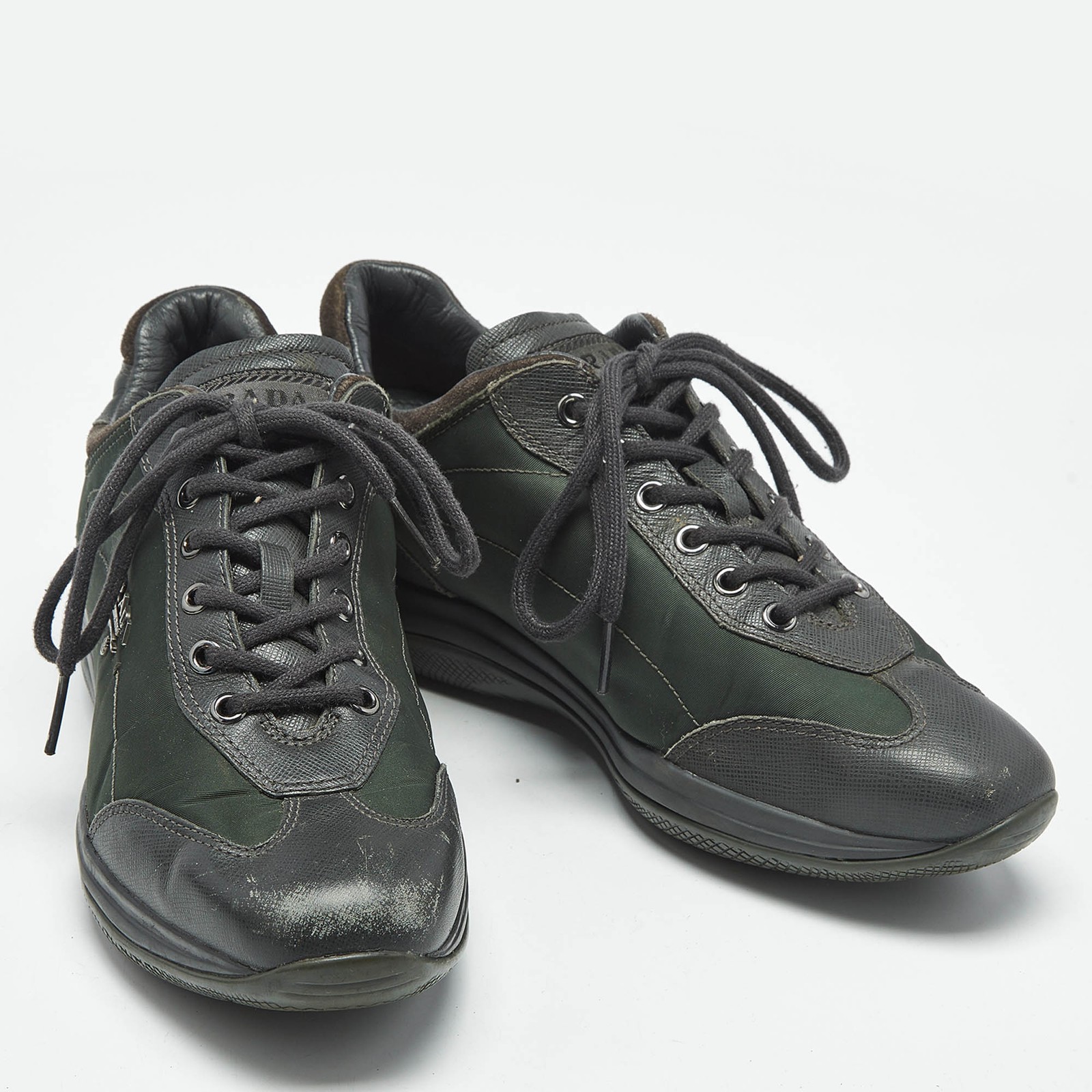 Step into effortless luxury with these Prada Sport sneakers. These luxe kicks offer a harmonious blend of style and comfort, perfect for those who demand sophistication in every step.Certified by The Luxury Closet - This item has gone through a detailed authentication process overseen by our experts. We offer a lifetime guarantee of authenticity on all our items. Import duties, taxes and charges are not included in the item price. These charges are the buyers responsibility. Please check with your country’s customs office to determine what these additional cost will be prior to buying. Our eBay Store About Us Contact Us Add to Favorite Sellers Prada Sport Green Leather and Nylon Lace Up Sneakers Size 38.5 $451 Step into effortless luxury with these Prada Sport sneakers. These luxe kicks offer a harmonious blend of style and comfort, perfect for those who demand sophistication in every step. Product Details Brand Color Green Dimensions Material Leather, Nylon Size 38.5 Outsole Width Outsole Length Heel Height Includes Certified by The Luxury Closet This item has gone through a detailed authentication process overseen by our experts. We offer a lifetime guarantee of authenticity on all our items. How We Check The in-house team of experts at The Luxury Closet is highly trained to verify the authenticity and the condition of the luxury products. They ensure that only 100% authentic items are put on sale.The evaluation process is unique with its own mix of assessment criteria and differs according to the category. Each item is evaluated based on the following combination of hallmarks, hardware, stitching, symmetry, material, craftsmanship, stamping, codes, hologram stickers, and packaging. Our authenticators also check if the items have been modified or amended (e.g., aftermarket diamonds, replaced batteries, repaired bags, etc.) International Buyers Import duties, taxes and charges are not included in the item price. These charges are the buyers responsibility. Please check with your country’s customs office to determine what these additional cost will be prior to buying.