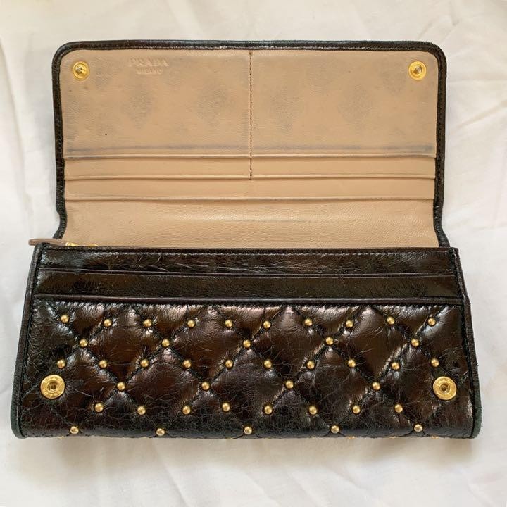 Prada Studded Leather Long Wallet with Detachable Chain