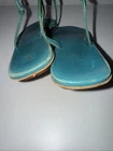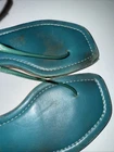 Elevate your style with these stunning Prada T Strap Thong Sandals in a beautiful teal color. The sandal features a buckle closure for a comfortable and secure fit, with an adjustable strap for added convenience. The flat wedge heel style provides a comfortable fit for all-day wear, while the logo accents add a touch of elegance to the design. Crafted with high-quality leather, the sandal's upper, lining, and insole materials ensure durability and comfort. Perfect for casual occasions, these sandals are great for any season, whether it's summer, fall, or spring. Made in Italy, these Prada thong sandals are a must-have for any fashion-forward woman's shoe collection. Sold as is has signs of wear Please see all pictures. No Returns Happy to answer questions.