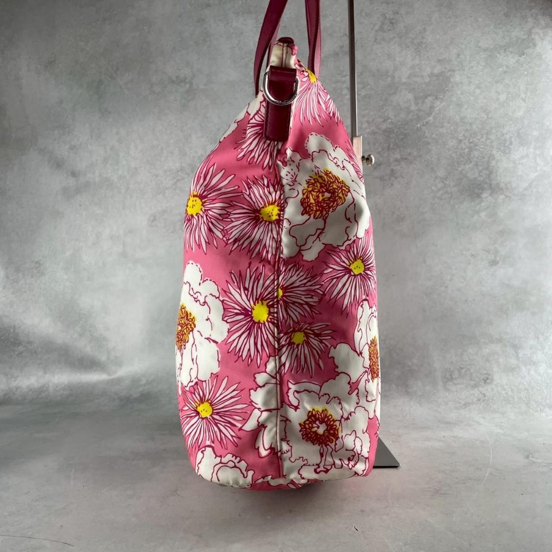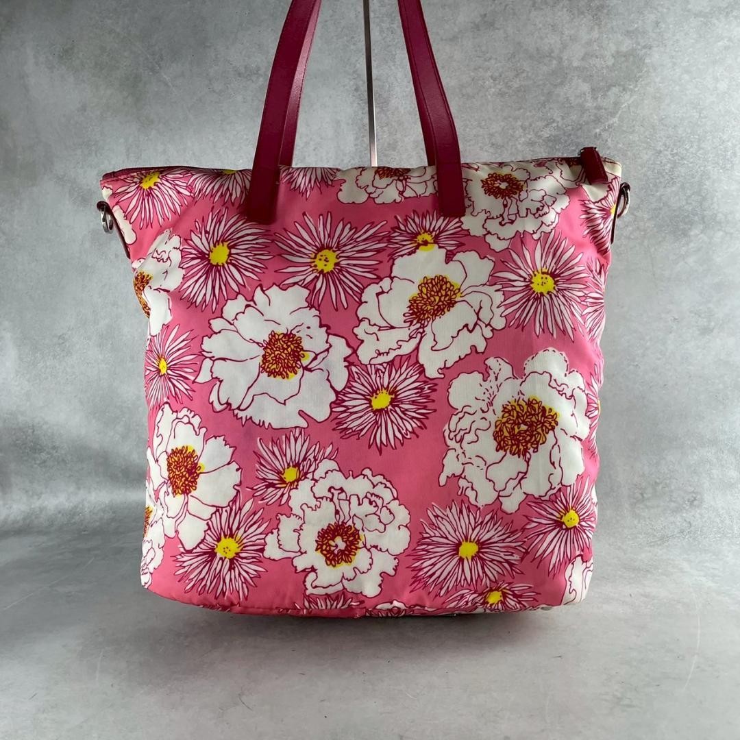 Prada Triangle Flower 2-Way Tote Bag Key Features - **Product Description:** PRADA Triangular Logo Flower Pattern 2-Way Tote Bag. Crafted from genuine saffiano leather, this stylish bag features a floral design, suitable for both women and men. It offers ample space for A4-sized items, including laptops, with versatile shoulder and hand carry options. - **Features:** Color: Pink-based with floral pattern Material: Genuine saffiano leather Size: Height approx. 35cm, Width approx. 42cm, Depth approx. 14cm Handle: approx. 21cm, Shoulder strap: approx. 135cm Includes: Shoulder strap, authenticity cards, serial tag, white tag - **Condition:** Rank A: Overall excellent condition with minimal signs of use. No significant damage. Slight discoloration at the opening. Comes with authenticity cards and accessories. **Item Specifics:** Brand: PRADA Model: Triangular Logo Flower Pattern Tote Type: 2-Way Tote Bag Specifications Brand Prada Country Japan Product Description Description Thank you for your interest. This item is not new, but a used item that was given away. Please check the photos for the condition of the item. Please understand that the condition of the item is subjective and the standard of evaluation and feeling may vary from person to person, so please be aware that this is a used item before bidding. Please check the photos for the condition of the item, such as scratches and stains. To prevent problems, please feel free to contact us if you have any questions about the size or other details of the item. We will be happy to adjust the price. We will do our best to ship your order as soon as possible. We will do our best to ship as soon as possible, but there may be delays during the busy harvest season. Remarks All the products we sell are obtained and sold by pawn shops that are authorized brands, so all the products we handle have been authenticated to meet our strict standards for authenticity, so please buy with confidence. Payment Supports managed payments Please pay within 5 days after auction is finished. About Us We are located in Japan. It's our pleasure to make you happy by proposing our recommend item. If you have any questions or request about items, please feel free to ask us. International Buyers - Please Note: -Importduties, taxes, and charges are not included in the item price or shipping charges. These charges are the buyer's responsibility. -Please check with your country's customs office to determine what these additional costs will be prior to bidding/buying. -These charges are normally collected by the delivering freight (shipping) company or when you pick the item up - do not confuse them for additional shipping charges. -We do not mark merchandise values below value or mark items as - gifts - The US and International government regulations prohibit such behavior. Thank you for your understanding