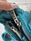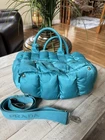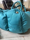 💫 Preowned very unique Prada puffy Tote. 💫 6 zippered compartments an extra pocket inside bag. Silver hardware with 4 silver feet on bottom. 💫 Size: 14"L x 9"H x 8"W. 💫 Removable crossbody strap embroidered with Prada logo. 💫 Please see the all the pictures… It has some stains can be removed with dry cleaning and the handle has a slight detail that can be seen in the last pictures