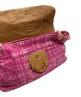 This Prada tweed shoulder bag is absolutely stunning! The quality is top-notch, with a luxurious feel and perfect stitching. The chain detail adds a chic touch, making it versatile for both casual and dressy outfits. It’s surprisingly spacious inside while still looking sleek. The tweed material is durable yet elegant, and the gold accents give it a high-end finish. Definitely worth every penny—it elevates any look instantly!