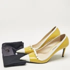 These timeless Prada pointed toe pumps are meant to last you season after season. They have a comfortable fit and high quality finish.Certified by The Luxury Closet - This item has gone through a detailed authentication process overseen by our experts. We offer a lifetime guarantee of authenticity on all our items. Import duties, taxes and charges are not included in the item price. These charges are the buyers responsibility. Please check with your country’s customs office to determine what these additional cost will be prior to buying. Our eBay Store About Us Contact Us Add to Favorite Sellers Prada Two Tone Leather Bow Pointed Toe Pumps Size 39 $169.4 These timeless Prada pointed toe pumps are meant to last you season after season. They have a comfortable fit and high quality finish. Product Details Brand Color Yellow Dimensions Material Leather Size 39 Outsole Width 8 cm Outsole Length 26 cm Heel Height 9 CM Includes Original Dustbag, Extra Heel Tip, Info Booklet Certified by The Luxury Closet This item has gone through a detailed authentication process overseen by our experts. We offer a lifetime guarantee of authenticity on all our items. How We Check The in-house team of experts at The Luxury Closet is highly trained to verify the authenticity and the condition of the luxury products. They ensure that only 100% authentic items are put on sale.The evaluation process is unique with its own mix of assessment criteria and differs according to the category. Each item is evaluated based on the following combination of hallmarks, hardware, stitching, symmetry, material, craftsmanship, stamping, codes, hologram stickers, and packaging. Our authenticators also check if the items have been modified or amended (e.g., aftermarket diamonds, replaced batteries, repaired bags, etc.) International Buyers Import duties, taxes and charges are not included in the item price. These charges are the buyers responsibility. Please check with your country’s customs office to determine what these additional cost will be prior to buying.