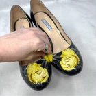 Prada "Vincent St. Beauty" Excellent preowned condition, minor wear including a tiny heel scuff (pic 9) comes with 2 navy blue branded logo dust bags (dust bags show some wear) women's size EU 38.5 RETAIL: $750 dark teal/gray background color yellow floral flower print "Roses" glossy patent leather upper 100% leather construction: upper, lining, insoles & outsoles slip-on rounded closed toe pumps covered block heel made in Italy Bergdorf Goodman exclusive Prada Fall 2019 capsule collection *approx* just over 4.5" heel height (see measurement photo for exact) FAOAI designer luxury luxe glam glamorous classic elegant feminine dainty cottage cottagecore dressy cocktail party formal event special occasion wedding guest bachelorette going out date night coquette preppy retro mod modern contemporary vintage 70s 80s 90s 2000s y2k free people anthropologie loveshackfancy mother anine bing aritzia skims abercrombie & fitch theory revolve veronica beard reformation aerie madewell j. crew ralph lauren polo zara aviator nation jenni kayne doen nordstrom blogger favorite shoes reseller