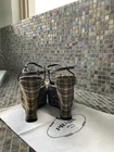 These authentic Prada runway platforms come with their original box. They are New . This was purchased @ the Prada store in Rome Italy- Retail value $1k+. I recently had foot surgery and can no longer wear high heels, so I’m letting go of my designer shoes that no longer fit my current lifestyle. Please check out all other designer items in my store! This beautiful platform style is made with 100% Vichy plaid, featuring a rich textured fabric in shades of brown, blue, yellow, and black, along with a curved heel design approximately 5 inch high. The shoes are in almost perfect condition. They are a size 37 Italian, which translates to a size 7 U.S. These heels are perfect for women who want to add a touch of luxury to their wardrobe. Prada is known for its high-quality products and attention to detail, making these shoes a great investment piece. If you have any questions about this item, including the size or any other details, feel free to contact me.