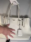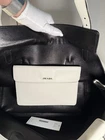 Elevate your style with this stunning Prada Vitello Phenix Tote Bag in elegant white leather. This authentic Prada piece combines timeless luxury with everyday practicality, featuring a spacious interior and a detachable pouch for added organization. Features: • Brand: Prada • Model: Vitello Phenix Tote with Pouch • Material: City Calf leather • Color: White • Interior: Black leather lining • Closure: Double buckle closure • Handles: Dual rolled leather top handles • Hardware: silver-tone • Made in: Italy • Includes: Detachable matching leather pouch with snap attachment; luggage tag, and Prada dust bag Measurements (Approx.): • Width: 20.5” • Height: 11” • Depth: 7.25” • shoulder strap drop: 9.25” Condition: • Exterior leather is in very good condition with light creasing from gentle use. • Handles are clean and in great shape. • Interior leather lining is clean with minimal signs of wear. • Pouch is in very good condition. • No major stains, rips, or odors. Authenticity Guaranteed: This item has been authenticated by The Real Real and will go through eBay’s authentication as well for double peace of mind. I have not used it since purchasing. 📦 Ships fast and securely packaged.