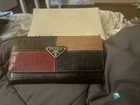 The NEW Prada Wallet is a stylish and practical accessory for women, featuring a zip-around design with multiple compartments for credit cards and a checkbook attachment. Made from high-quality leather in Italy, this wallet showcases the iconic Prada logo and comes in a trendy multicolor design. With 6 credit card slots and 4 pockets, this wallet offers plenty of space for organizing your essentials while staying on-trend. Ideal for those who appreciate luxury fashion and functionality.