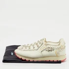 Prada White/Pink Leather Low Top Sneakers Size 37.5
