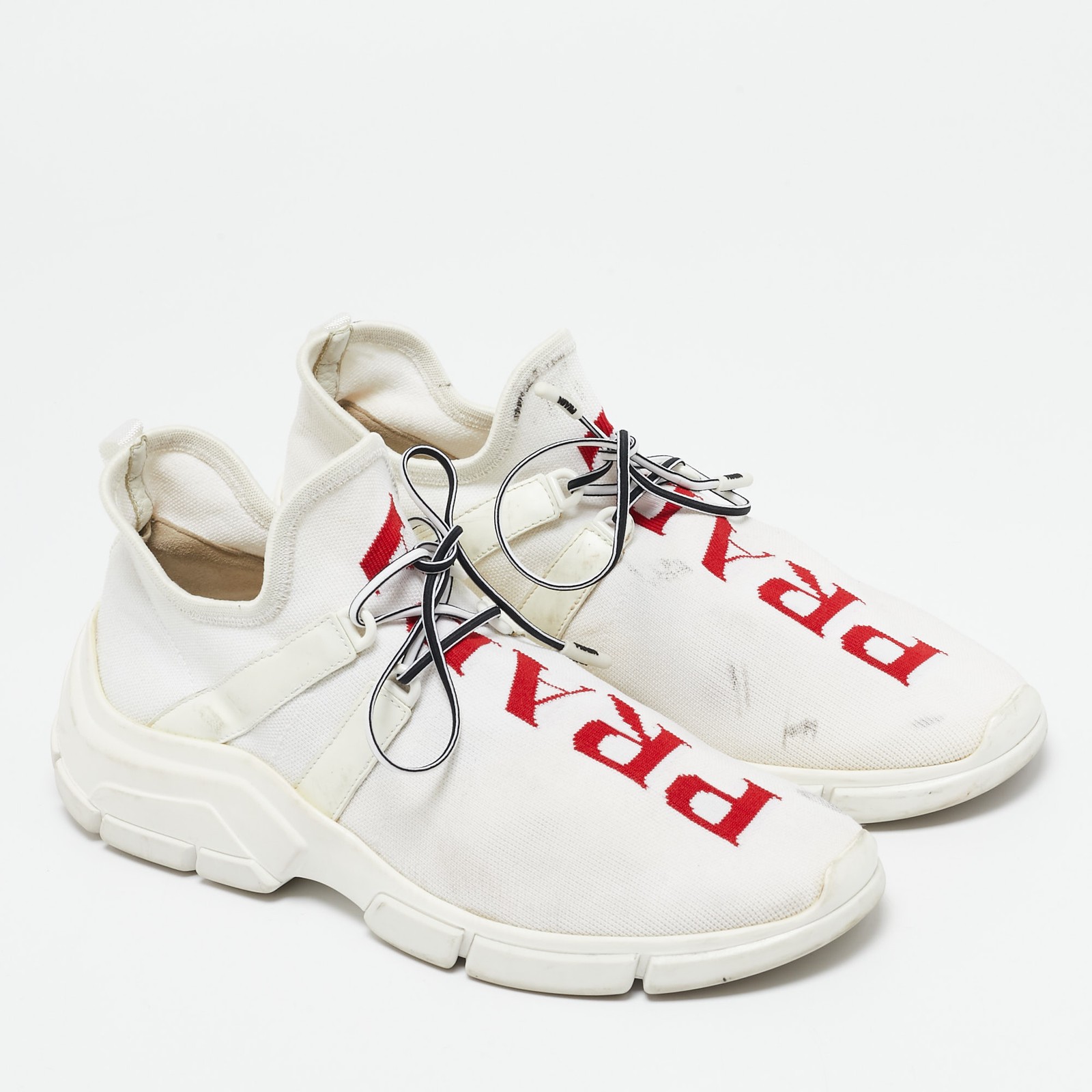 Coming in a classic silhouette, these designer sneakers are a seamless combination of luxury, comfort, and style. These sneakers are finished with signature details and comfortable insoles.Certified by The Luxury Closet - This item has gone through a detailed authentication process overseen by our experts. We offer a lifetime guarantee of authenticity on all our items. Import duties, taxes and charges are not included in the item price. These charges are the buyers responsibility. Please check with your country’s customs office to determine what these additional cost will be prior to buying. Our eBay Store About Us Contact Us Add to Favorite Sellers Prada White Knit Fabric Logo Low Top Sneakers Size 39 $185.9 Coming in a classic silhouette, these designer sneakers are a seamless combination of luxury, comfort, and style. These sneakers are finished with signature details and comfortable insoles. Product Details Brand Color White Dimensions Material Knit Fabric Size 39 Outsole Width 10 cm Outsole Length 28 cm Heel Height Includes The Luxury Closet Packaging Certified by The Luxury Closet This item has gone through a detailed authentication process overseen by our experts. We offer a lifetime guarantee of authenticity on all our items. How We Check The in-house team of experts at The Luxury Closet is highly trained to verify the authenticity and the condition of the luxury products. They ensure that only 100% authentic items are put on sale.The evaluation process is unique with its own mix of assessment criteria and differs according to the category. Each item is evaluated based on the following combination of hallmarks, hardware, stitching, symmetry, material, craftsmanship, stamping, codes, hologram stickers, and packaging. Our authenticators also check if the items have been modified or amended (e.g., aftermarket diamonds, replaced batteries, repaired bags, etc.) International Buyers Import duties, taxes and charges are not included in the item price. These charges are the buyers responsibility. Please check with your country’s customs office to determine what these additional cost will be prior to buying.