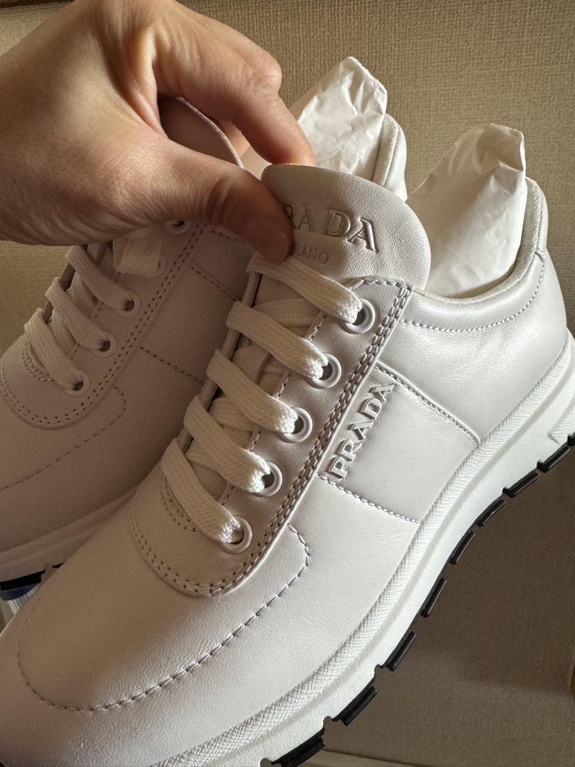 $ 592.83PRADA Sneakers White Triangle Logo 24cm Regular Store Purchase New Unused