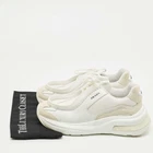 Lightweight yet sturdy, Prada’s Systeme sneakers offer a streamlined profile in white fabric and leather with high tech flair.Certified by The Luxury Closet - This item has gone through a detailed authentication process overseen by our experts. We offer a lifetime guarantee of authenticity on all our items. Import duties, taxes and charges are not included in the item price. These charges are the buyers responsibility. Please check with your country’s customs office to determine what these additional cost will be prior to buying. Our eBay Store About Us Contact Us Add to Favorite Sellers Prada White Fabric and Leather Systeme Lace Up Sneakers Size 41 $250.8 Lightweight yet sturdy, Prada’s Systeme sneakers offer a streamlined profile in white fabric and leather with high tech flair. Product Details Brand Color White Dimensions Material Fabric, Leather, Suede Size 41 Outsole Width Outsole Length Heel Height Includes Certified by The Luxury Closet This item has gone through a detailed authentication process overseen by our experts. We offer a lifetime guarantee of authenticity on all our items. How We Check The in-house team of experts at The Luxury Closet is highly trained to verify the authenticity and the condition of the luxury products. They ensure that only 100% authentic items are put on sale.The evaluation process is unique with its own mix of assessment criteria and differs according to the category. Each item is evaluated based on the following combination of hallmarks, hardware, stitching, symmetry, material, craftsmanship, stamping, codes, hologram stickers, and packaging. Our authenticators also check if the items have been modified or amended (e.g., aftermarket diamonds, replaced batteries, repaired bags, etc.) International Buyers Import duties, taxes and charges are not included in the item price. These charges are the buyers responsibility. Please check with your country’s customs office to determine what these additional cost will be prior to buying.