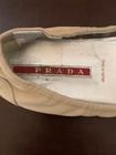 Prada Womens Beige Ballet Flats Size 6 Condition is "Pre-Owned". Shoes are in excellent used condition. Does not come in original box. No returns or refunds on this item. Thank you for looking at my auction!