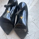 Prada Black Patent Leather Point Toe w/ Small Center Bow & Stiletto Heel Shoes size 37.5 in great condition one worn once or twice
