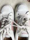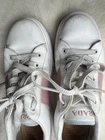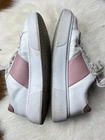Step up your footwear game with these authentic Prada women’s sneakers in a chic white and pink colorway. Crafted from premium leather, these stylish low-top sneakers feature a lace-up front and durable rubber soles with excellent traction. A perfect blend of comfort and luxury. Brand: Prada Color: White with Pink panel and heel detail Material: Leather upper and lining, rubber outsole Size: EU 39 (please refer to Prada’s size chart for best fit) Made in: Vietnam Condition: Pre-owned; scratchs, creasing and minor wear on soles. Clean and well-maintained (see photos) Without insole material. These designer sneakers are ideal for everyday wear or elevating a casual outfit. Please refer to the photos for a detailed view of the shoes condition. **Shipping Policy:** Shipping: We offer [standard shipping ] shipping takes less than two weeks. Handling Time: We strive to ship items within [2] business days after receiving cleared payment. International Buyers: Please note that import duties, taxes, and charges are not included in the item price or shipping cost. These charges are the buyer's responsibility. Please check with your country's customs office to determine what these additional costs will be prior to purchasing. **Returns and Exchange Policy:** Returns: We accept returns within [30] days of delivery. The item must be returned in the same condition as received, and the buyer is responsible for return shipping costs. Exchanges: Unfortunately, we do not offer exchanges at this time. **Thank You:** Thank you for your visit ! If you have any further questions or need additional information, please don't hesitate to contact us. We appreciate your interest and hope you enjoy your purchase.