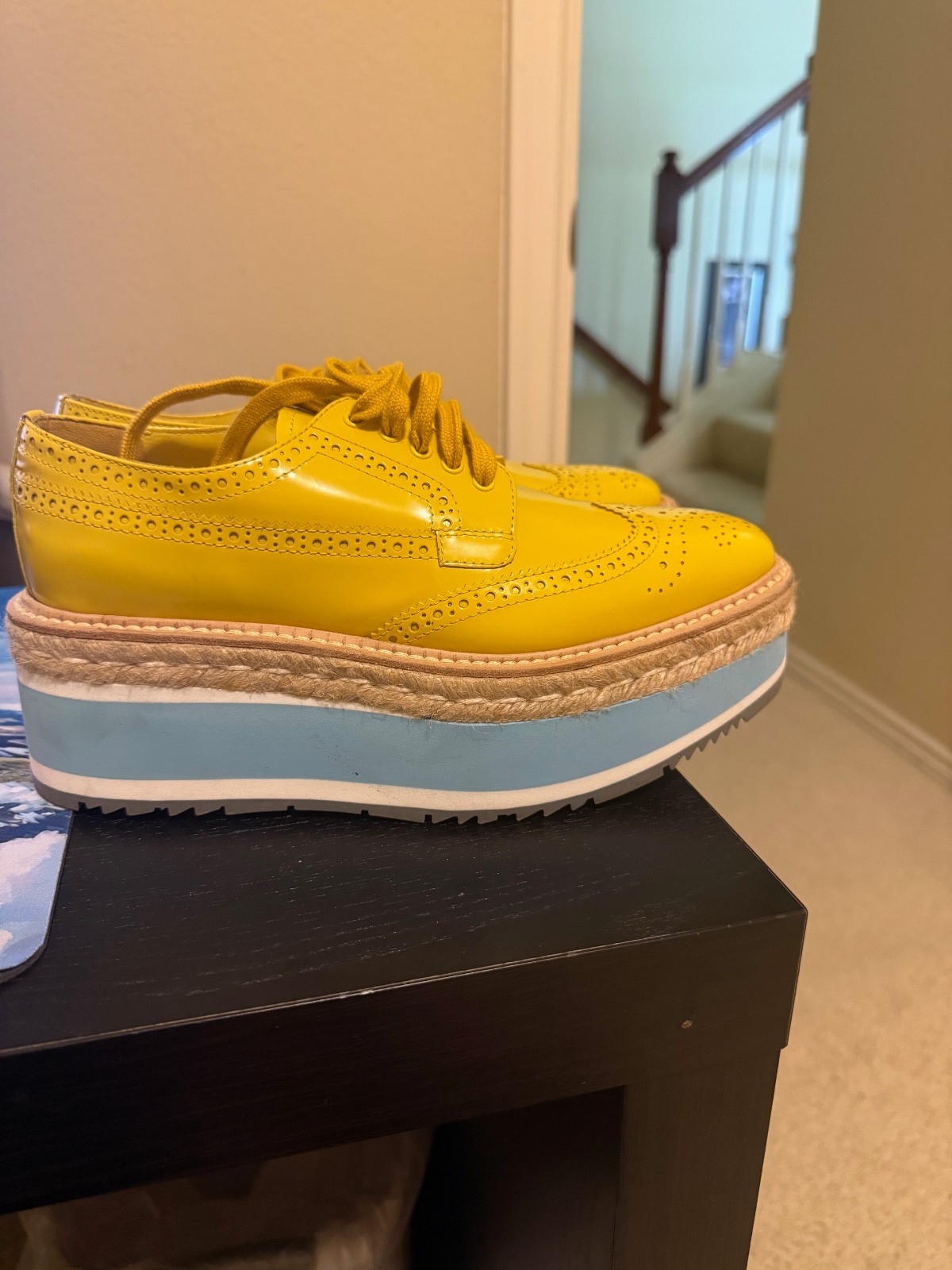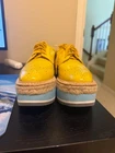 These Prada brogues are absolutely stunning! The Italian craftsmanship shines through—luxurious yellow leather, a perfect platform height, and incredible comfort. They’re barely worn, looking brand new, and go with so many outfits. A total wardrobe upgrade!