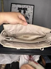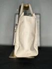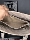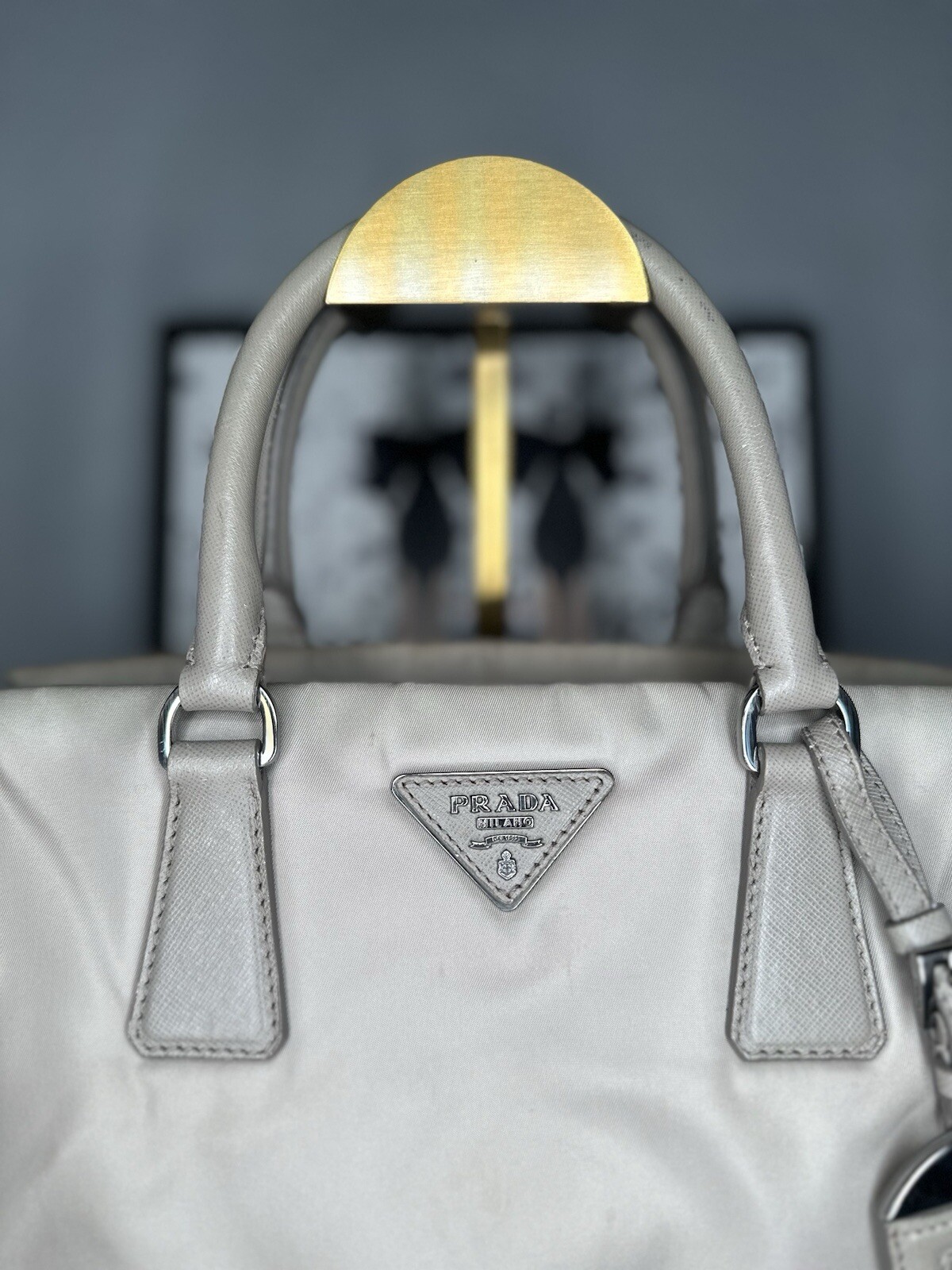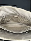 Prada Leather and nylon tote bag grey beige color with luggage tag d rings. Condition is Pre-owned. Shipped with USPS Priority Mail.