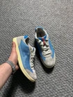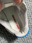 The product is a pair of men's Prada sneakers in size 7.5. These casual shoes feature a stylish blue color with a suede upper material, making them a fashionable choice for everyday wear. The iconic Prada brand ensures high quality and attention to detail, making these sneakers a versatile and trendy addition to any man's wardrobe.