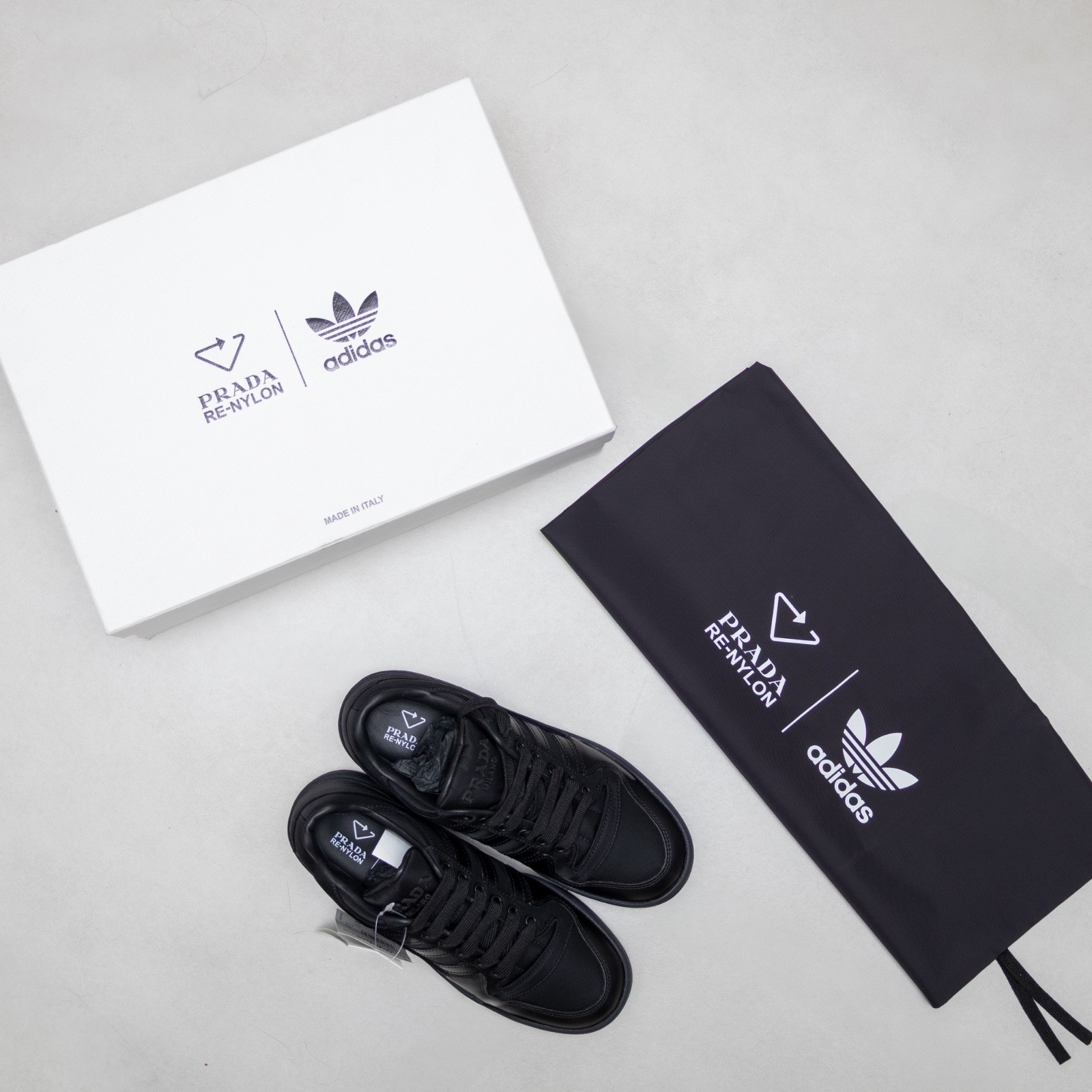 Prada x Adidas A+P Re-Nylon Forum Low Sneakers — Black Women’s GY7043 Prada and Adidas The A+P Re-Nylon Forum Low reimagines the iconic Forum silhouette through the lens of luxury and sustainability. Crafted in Italy from ECONYL® 100% regenerated nylon with smooth leather accents, these sneakers blend streetwear heritage with refined Italian craftsmanship. Product Details: • Brand: Prada x Adidas Originals • Model: A+P Re-Nylon Forum Low (Style Code: GY7043) • Color: Black • Material: ECONYL® regenerated nylon with leather overlays • Includes: Original box and Prada Re-Nylon branded dust bag • Sizing as shown on tag and box: • US 5 / UK 4.5 / EU 37⅓ / JP 230 / CHN 230 • Listed and sold as Women’s shoes • Made in Italy Condition: • Brand new and never worn • Both shoes are missing the small Prada logo patch on the exterior sides — sold as-is , exactly as pictured • Uppers are flawless, no signs of use or creasing • Insoles are pristine, with original tissue and tags intact • Outsoles are clean and unworn • Box and dust bag in excellent condition Shipping: • Ships securely with tracking and full insurance • Domestic and international shipping available • Carefully packed to ensure safe arrival Please examine all photos carefully prior to purchase. Shoes will be shipped exactly as shown.