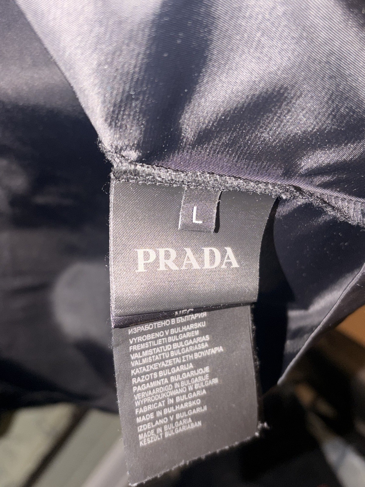 The Prada Re-Nylon is a stylish and high-quality outerwear option for men. Made of durable nylon with a solid black color, this jacket features a zip closure, stand-up collar, and the iconic PRADA logo accents. The jacket is perfect for casual occasions during the winter and fall seasons, adding a touch of designer flair to any outfit. Crafted in Italy, this jacket combines practicality with a fashionable design, making it a versatile and trendy choice for the modern man.