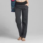 medium Performance Summit Pants by PrAna Features: Straight Leg with Adjustable Strap at the Hem Mid Rise Gray Color Called Charcoal Heather Solid Print 4 Pocket Style Pull On Closure Stretch Soft Shell Fabric A