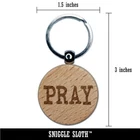 Pray Fun Text Engraved Wood Round Keychain Tag Charm
