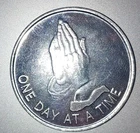 Praying Hands One Day At A Time Medallion Coin AA, NA OA and more Chip Aluminium Serenity Prayer. The Free Shipping is Currently Averaging the USPS between 7-10 Business Days in the continental US. Tracking is not included in Shipping. Please choose First class if you want it tracked or sooner.