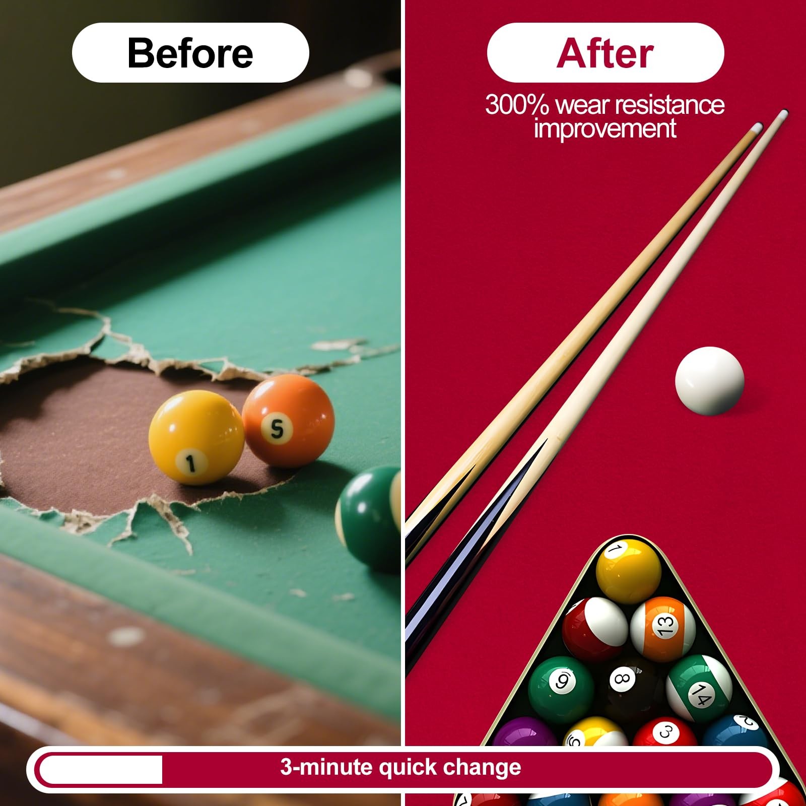 Upgrade your game with Pool Table Felt Replacement Kit! This 8ft billiard cloth features pre-cut precision for seamless installation. Engineered fiber material delivers tournament ball speed while resisting tears/fading. Includes gloves, staple remover, and 6 securing strips – everything for DIY pool table felt replacement. Perfect for homes, bars, or clubs. Vibrant red color maintains intensity after impacts. Note: Designed for standard 8ft tables. ✅ Complete 8ft Replacement Kit: Includes 1 pre-cut pool table felt, 6 cloth strips, staple remover & 2 gloves. Perfect for billiard cloth renewal! ✅ Durability: Premium fiber pool felt resists tearing/fading. Optimized tensile properties for fast ball rolls & impact resistance. ✅ Precision Pre-Cut Design: Saves 2+ hours vs DIY cutting. Ready-to-install felt for pool table with factory-edged accuracy. ✅ Tournament-Grade Performance: Low-nap surface ensures consistent ball speed. Ideal for pool table felt replacement in clubs/homes. ✅ Pro Installation Tools: Staple remover + grip gloves simplify fitting. Cloth strips secure edges without wrinkles. ✅ Universal 8ft Compatibility: Fits standard pool table cloth (2.6m x 1.45m). Strips: 1.3m x 0.14m. Measure table first!