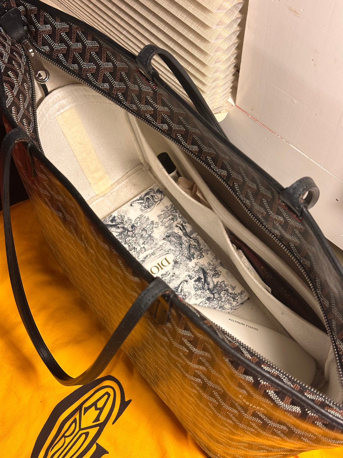 Love this pre-owned Goyard Artois MM! The metallic personalization adds a unique touch, and the bag is still in great shape with only minor wear. It’s such a steal compared to retail, and the included insert is a nice bonus. Perfect for everyday use while still looking luxurious. Highly recommend!