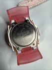 This pre-owned women's Casio Baby-G digital watch features a clear bezel and case with a blue canvas band. The watch has a quartz movement and a reference number of BG164. It is water-resistant and equipped with an alarm function. The design is a mix of sporty, casual, and classic styles, making it versatile for various occasions. The watch has a clear dial display and has received a new battery, ensuring reliable timekeeping.