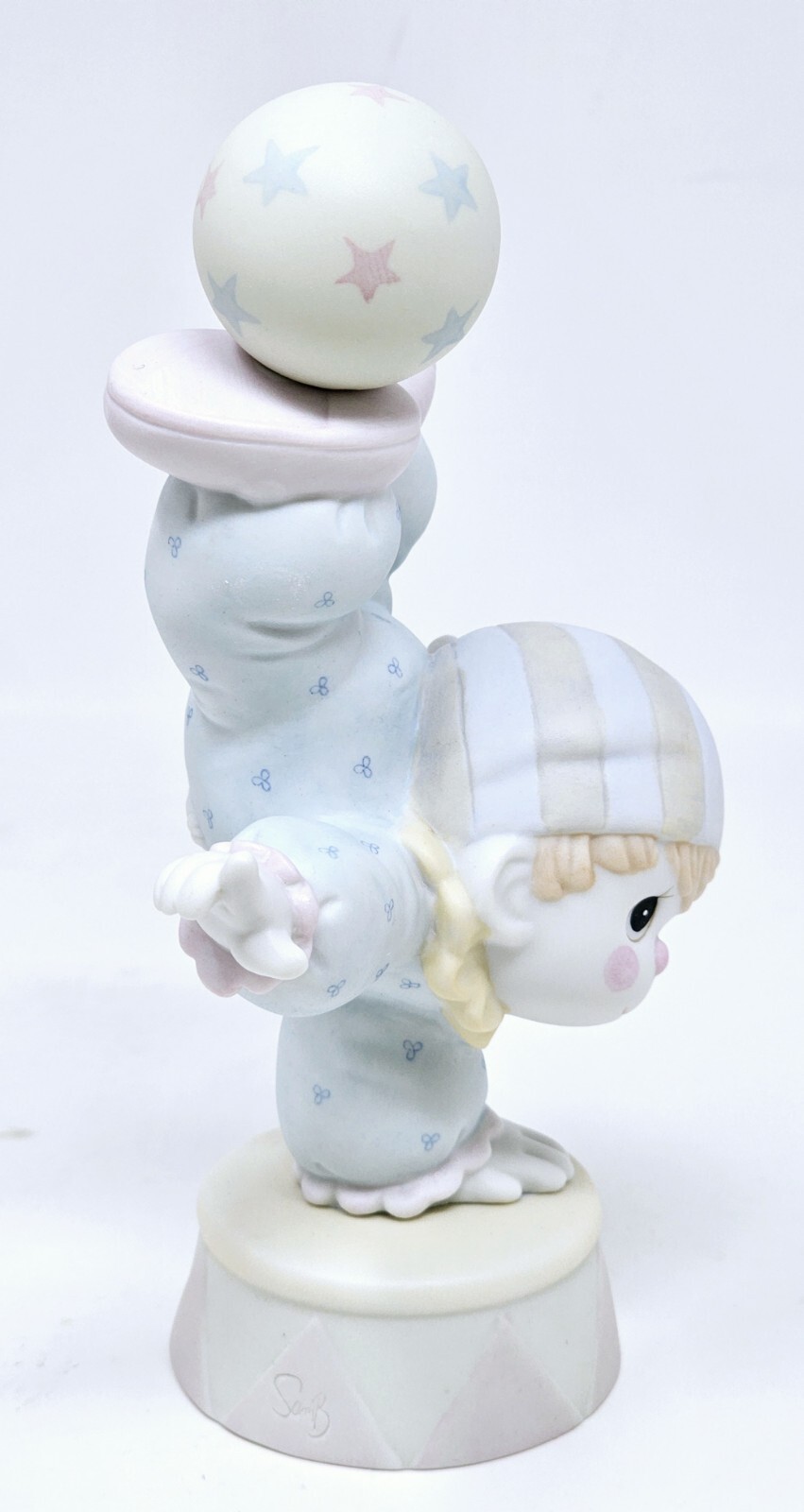 Has box, w/tags. VGC, no damage. The Precious Moments "Smile Along the Way" figurine depicts a clown standing at 6.5 inches tall, made of matte porcelain bisque in a multi-colored finish. Manufactured in 1986, this medium-sized figurine is a part of the Clowns collection and features an American style design. It comes in its original box and is signed with tags, making it a desirable piece for collectors or as a gift for occasions like Christmas, Easter, birthdays, or for clown enthusiasts.