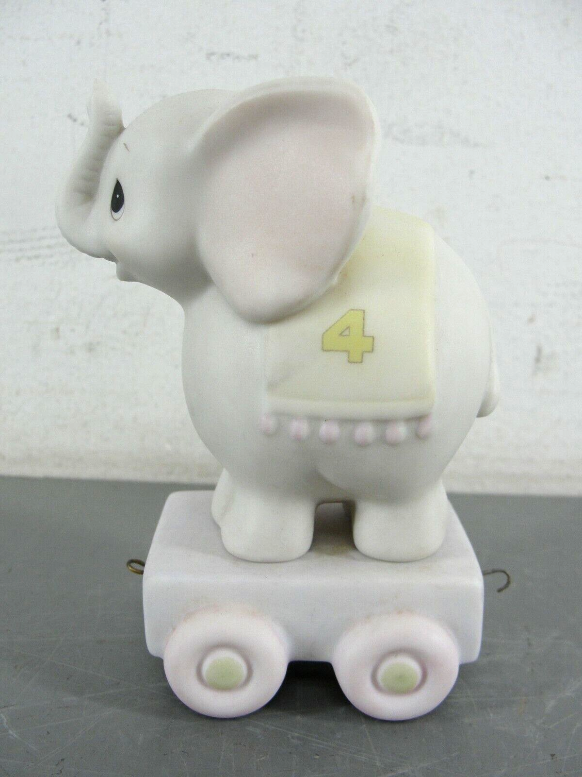 PRECIOUS MOMENTS BIRTHDAY TRAIN SET ELEPHANT #4 PIECE ONLY 1985 SAMUEL B VINTAGE Up for your consideration is this Adorable Vintage Precious Moments train set Elephant #4 piece ONLY. This cute porcelain Elephant piece attaches to the Precious Moments Birthday train set with a small wire hook on front and back and was made for a child's forth birthday. The Elephant is standing on a small train car and has a yellow #4 on it's side. The bottom of the train reads "May Your Birthday Be Gigantic". This is an original vintage piece from 1985 designed and signed by Samuel J Butcher. Get this piece today for your Precious Moments Birthday train set collection! Please be sure to see the other items we have listed. FEATURES: Vintage 1985 Precious Moments Birthday Train Set Elephant #4 PIECE ONLY - Little Lamb on train car - Reads "May Your Birthday Be Gigantic" on the bottom - Designed and signed by Samuel J. Butcher - small wire hook on each side for attaching to the rest of the train set ADD. INFO: N/A INCLUDED: The actual Precious Moments Train set Elephant #4 train piece only as pictured. NOT-INCLUDED: No original box, packaging, or paperwork. No batteries, bulbs, or any props used for size reference. BRAND: Precious Moments LABEL: #4 - May Your Birthday Be Gigantic DIMENSIONS: It measures just under 2" wide x 3" long (front to back including hooks) x just under 4" tall. COLOR: Light blue, pink, yellow, and white TYPE: Collectibles, figurines, Precious Moments, Elephant #4 MODEL #: 15970 COPYRIGHT DATE: 1985 CIRCA: Likely around the 1980's give or take 5 years. COUNTRY: Unknown MATERIAL: Porcelain CONDITION: This vintage Precious Moments Elephant #4 piece only comes to you in overall excellent condition. There are no chip or cracks to the porcelain. AUTHENTICITY and your SATISFACTION are UNCONDITIONALLY 100% GUARANTEED!!! Once you get it - if you are not thrilled just let us know - we gladly accept returns. Check our feedback and buy with complete confidence we have been selling on eBay everyday since 2001. SHIPPING DETAILS: The buyer pays for securely packed EXPEDITED shipping. It will include tracking and insurance. For premium services delivery to your address will usually take between 3 to 5 days. I will always combine shipping to save you money whenever possible, just email us to let us know. Please be sure to click on the shipping tab to compare rates and see all of the options available for shipping, some options cost less than others. SHIPPING CONDITIONS: *** Please Take Note!!! If paying via Pay-Pal we can ONLY ship to the address that is included with your Pay-Pal payment . If you need it sent to a different address please change that prior to making payment. LOC: C 31 F You really like the thing, but not so much the price... I find cool stuff, do some research and list it for what I think it's worth. Sounds pretty simple but sometimes not. So if this is something you really like but its a bit more than you had hoped to pay, then be sure to watch this because I can't send it to the bank, and if it ends without a buyer chances are good that I will drop the price and re-list it until it does sell! Two things for sure - it will get sold sooner rather than later, and that's better for both of us. International Buyers We will ship to most, but not all locations around the world. We use Priority Mail, and it will include full insurance and delivery confirmation. Unfortunately we do not ship using first class international mail because there is no insurance available. "Import Duties", "Tariffs" and "Taxes" are NOT included in the item price or shipping charges. These charges are imposed and collected by your country and are your responsibility. Please check with your country's customs office to determine what these additional costs (if any) will be prior to bidding/buying. These charges are normally collected by your customs office when you pick the item up or upon delivery ? please do not confuse them with shipping charges, they are not. Buyers using the Ebay Global Shipping Program will be shown these cost prior to purchase. We can NOT reduce the value on the "Customs Forms". The sales prices is automatically entered and also sets the maximum amount that the item can be insured for. We can not mark items purchased by you as "gifts". Some countries restrict or prohibit the import of certain items such as currency - jewelry or animal parts such as teeth, claws, horns or shells from many creature on the endangered specie list. The lists varies widely and changes often. It is your responsibility to check and make sure your country allows this specific item to be imported by you. We take a great deal of pride in our feedback rating and never want you surprised by anything you get from us. PLEASE If there is ever an issue, all we ask is that you give us an opportunity to address it BEFORE leaving feedback. Overall General Condition New Excellent Very Good Good Fair Poor Appearance Brand new and never used. No visible flaws in appearance. First quality, suitable for a gift. Like new condition. Upon close inspection some very minor signs of use or wear, but no serious flaws. Obviously used but kept in great conditional and well cared for. Expected normal signs of wear but no abuse. Clearly used allot, enough to cause significant signs of wear. See item description for more details on further future use. Used extensively, many cosmetic flaws and signs of wear. Questionable functionality Sold "AS IS" Used extensively with abundant and major cosmetic flaws. Likely non- functional. Sold "AS IS" for decorative use only. HUGE eBay STORE; If you liked this item, then you should take a look at some of the other items I have listed, some listings are "Buy-It-Now" and may even have a "best offer" and occasionally go on sale. It's a "virtual treasure trove" crammed full of 100's & 100's of old, new, odd & unusual items!! New items are added weekly. So take a minute and visit our store to see thumbnail pictur