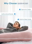 pregnancy pillow 55in, with silky jersey cover, pink Symmetrical U Shape: The u shaped pregnancy pillow is 55”x31”x7”, ergonomic design drapes along your body, gives total support to your head, back, hips and legs. Consistent left and right makes it easy to flip over at night. Ensures long quality sleep Silky soft: So soothing. The maternity pillow comes with breathable silky cover. It’s stronger and softer than cotton and gentle on skin, moisture wicking, offers long lasting comfort. The cover is machine washable, easy for cleaning Cool to touch: The only pillow you’ll ever want next to your skin. With good heat dissipation, perfect for summer or during pregnancy, also heavenly soft, fillings adjustable through the pillowcase zip. Stay cool and comfy all night Anytime, Anywhere: Use the body pillow anywhere you want to get cozy. Position to your bed, sofa even the floor when sitting, nursing, reading or watching TV to get support. The pillow is loved by people recovered from injured, sciatica and reflux because of its extraordinary supportive function Have a try! We’re so confident you’ll love this pillow. If not, tell us why and we will make it right. Feel free to reach out to us if any concerns or questions you have. Better allow 72hrs for the pillow fluff up before first use due to vacuum transport