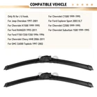 Note: Any questions please contact customer service as a priority, customer service will reply you within 24 hours! Home Payment Shipping Return Policy About Us Contact Us Feedback 18"+18" Front Wiper Blades For Chevrolet C1500 K1500 Jeep Ford RANGER 1993-2011 COMPATIBLE VEHICLE(FOR REFERENCE ONLY) YEAR Make Model & Engine 1997-2001 Jeep Cherokee 1999-1995 Chevrolet K1500 1993-2011 Ford RANGER 1994-1996 Ford F150 F250 F350 2006-2011 Chevrolet HHR 1997-2002 GMC C6500 Topkick 1999-1995 Chevrolet C1500 2003 Ford Explorer Sport XLT 1999-1995 Chevrolet C2500 1999-1995 Chevrolet Suburban 1500 ITEM SPECIFICATIONS Condition & Status 100% Brand New Color Black Size 18" & 18" Compatible Wiper Arm J U HOOK Wiper Arm Package Included 2x 18" J U Hook Wiper Blade Package size 18.5in*1.96in*1.57in(47cm*5cm*4cm) Rough weight 0.245kg Material ABS+Rubber Warranty 1 Years 100% Safisfacfion Guarantee Note All automotive accessories in our store are recommended for pro Shipping Payment Return Policy About us Contact us Shipping Before submitting your order, kindly verify that your mailing address and order specifics are correct. We regret that we cannot accept responsibility for any undelivered items caused by inaccurate or missing address details. After payment confirmation, we'll dispatch your order within 1 working day. Orders placed by 9 AM Pacific Standard Time on weekdays will generally ship out the same day, originating from a warehouse closest to you. All orders will be delivered via economic logistics with a tracking number and will arrive within 3-7 working days. If you prefer faster delivery, we can offer you express logistics service, but there will be a corresponding increase in postage. This way, you can enjoy a quickershipping experience (please note that delivery times may be affected by factors such as weather conditions and the busyness of logisticstransfer points). Payment We accept PayPal and Payoneer as payment methods. All orders must be processed through the eBay auction checkout system. For multiple product purchases, you can negotiate the price with us, and once agreed, simply add all items to your eBay shopping cart and pay once for the entire order. payment-icons-2x-0127 Return Policy We offer a 30-Day Free Returns policy—simply notify us within 30 days of delivery. While returns are accepted without question, all items must be returned in their original packaging, accompanied by a valid shipping tracking number, a specific return reason, and original product tags. For purIf you encounter any issues, such as damaged products, items not arriving, wrong items being sent, or items not working, please contact us first. We will resolve all these issues to your satisfaction promptly.chases of multiple products, you can negotiate the price with us. All returns are for refund ONLY. No exchange accepted. Note: Returns are not available in the following cases The goods have been used (quality problems) or normal wear and tear Damage caused by incorrect installation or storage of products About us We exclusively offer premium products, and every item in our store is backed by a one-year, unlimited-mileage quality assurance. We strive to address and resolve any issues promptly. Remember, leaving negative feedback or low ratings does not facilitate problem-solving.Therefore, please engage with us in conversation, and we promise not to let you down. Contact us Our customer support team will be available every day of the week, Monday through Sunday. Warehouse operate from Monday to Friday. Before leaving us neutral or negative feedback, kindly reach out to us first. Avoid initiating cases through eBay or PayPal, and refrain from submitting any return requests without prior communication with us. Buy with confidence from a trusted seller