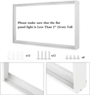 Premium Aluminum Surface Mount Bracket Set for Easy LED Panel Installation ‹ › ‹ › ‹ › ‹ › ‹ › ‹ › ‹ › ‹ › ‹ › ‹ › Premium Aluminum Surface Mount Bracket Set Effortless Installation for LED Panel Lights Product Details: Note Before Purchasing: This is NOT an LED flat panel light. We ONLY SELL surface mount frame kits. Broad Applicability: Designed for drywall, concrete, wood, and other flat ceilings; ideal for installations where there are no pre-existing openings. Universal Use: Pack of 4. External Size: L=48" (120.6cm), W=24" (60.6cm), H=2" (5cm). Ensure LED panel height is less than 2" (5cm) and body thickness less than 0.65" (1.7cm). Durable Construction: Made from premium aluminum with a white coating and anti-rust functionality for long-lasting appeal. Simple Installation: Comes with mounting screw fittings, allowing for a straightforward setup process. Advantages: Streamlines LED panel installation without the need for cutting or hollowing ceilings. Enhances the aesthetic appeal with a sleek, contemporary design. Durable and sturdy construction provides stability and longevity. Versatile kit compatible with most 2x4ft LED flat panel lights. Time-saving installation that guarantees a professional finish. Why Choose Our Premium Aluminum Surface Mount Bracket Set? Transform your lighting experience with our Premium Aluminum Surface Mount Bracket Set, designed specifically for effortless installation of LED panel lights. Constructed from high-quality materials, this mounting kit ensures durability and stability while enhancing your ceilings with a clean finish. Say goodbye to complex installations and embrace simplicity. This kit not only saves time but also provides the best solution for ceilings without pre-existing openings. Take control of your lighting upgrades - order your kit today and illuminate your space with ease! Shipping Free & Fast Shipping - We offer free shipping to most of the USA with a normal delivery time of 3-7 days. However, due to the current situation, additional delivery time (up to 3 weeks) may be required for some items. Alternative Carriers - We may use alternative carriers (e.g. USPS, FedEx, UPS, etc.) to ensure your package arrives safely and on time. Due to the use of multiple carriers, we are unable to provide a tracking number automatically. Handling Time - Orders are processed and shipped within 1-2 business days of receiving cleared payment. Shipping Restrictions - Shipping to Alaska, Hawaii, Puerto Rico, Guam, and other US territories may incur shipping charges or delivery restrictions. Please contact us before ordering, or your order can be refunded/cancelled. State Restrictions - There may be restrictions based on your state of purchase. For example, certain items may not be shipped to California due to state regulations. Contact for Tracking Updates - If you require tracking updates or have any concerns about the delivery of your order, please feel free to contact us, and we will be happy to assist you. Return 30-Day Hassle-Free Returns - We want you to be completely satisfied with your purchase. If you are not, you can return the item within 30 days of receiving it for a full refund or exchange. Easy Return Process - To start a return, simply contact us and we will provide you with a prepaid return shipping label and detailed instructions. Restocking Fee - There are no restocking fees for returns. However, the buyer is responsible for return shipping costs if the return is not due to a seller's error. Refund Processing Time - Refunds will be processed within 5 business days of receiving the returned item in its original condition. Payment We accept all major credit cards, PayPal, and Apple Pay for your convenience. Your payment information is secure and encrypted to ensure a safe and seamless transaction. Please complete your payment within 3 days of purchase to avoid any delays in shipping. Feedback Your feedback is extremely important to us. We strive to provide the best products and customer service possible. If you are satisfied with your purchase, please take a moment to leave us a positive review. If you have any concerns or issues with your order, please contact us before leaving negative feedback. We are committed to resolving any problems and ensuring your satisfaction. Contact Us If you have any questions or concerns, please feel free to reach out to our customer support team. You can contact us through the eBay messaging system. We are available Monday to Friday, 9:00 am to 5:00 pm EST, and we will do our best to respond to your inquiry within 24 hours. Thank you for supporting our small family business! UPC: Not Set Item Height: Not Set Item Length: Not Set Item Weight: 11.44 lb Item Width: Not Set Lumens: Not Set Power Consumption: Not Set Unit Quantity: 4 Material: Aluminum Room: Bedroom,Classroom,Conference Room,Home Office,Laundry Room,Storage Room Light Color: White Control Style: Touch Department: Adults Features: Easy to install,Flat panel light surface mount Labels & Certifications: Not Set Light Direction: Not Set Occasion: Not Set Brand: Unbranded Type: Surface Mount Kit Sensor Type: Light Style: 4ftx2ft Lighting Technology: LED Color: White Finish: Polished Number of Settings: Not Set Installation Area: Indoor LED String/Strip Type: Not Set MPN: Not Set Power Source: AC EC Range: Not Set Energy Star: Not Set Amperage: Not Set Color Temperature: Not Set Country/Region of Manufacture: Not Set Era: Not Set IP Rating: Not Set Item Diameter: Not Set LED Chip Code: Not Set Manufacturer: Not Set Manufacturer Warranty: Not Set Model: Not Set Number of Lights: Not Set Output Voltage: 110 V Product Line: Not Set Shade Shape: Not Set Voltage: 110 V Year Manufactured: Not Set Unit Type: Unit Assembly Required: Not Set
