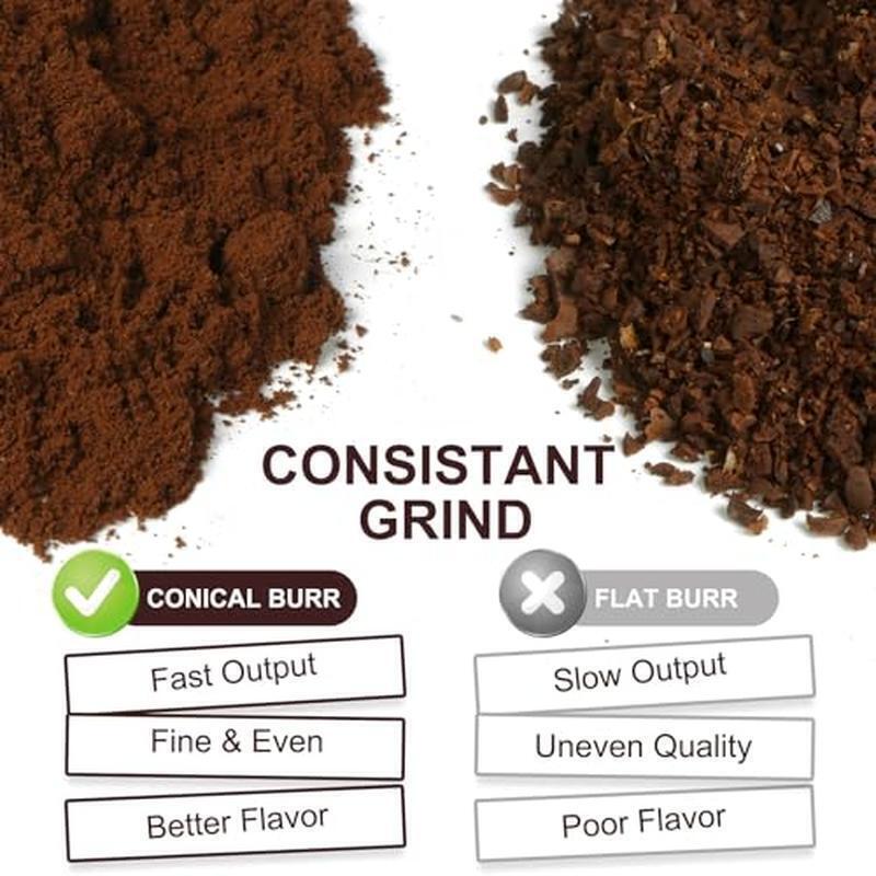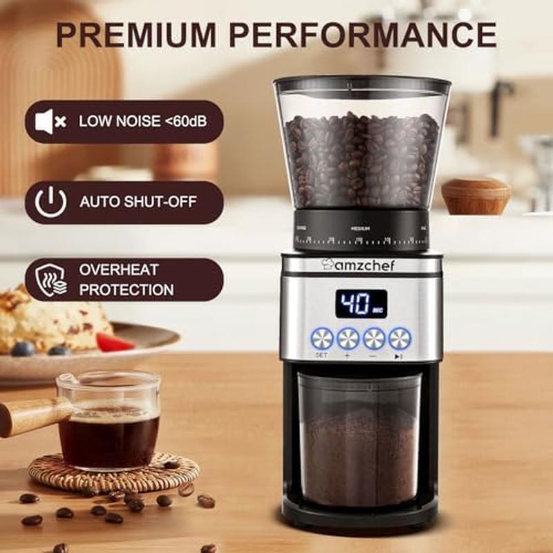 This coffee grinder is a game-changer! The conical burrs deliver a super consistent grind, and the 30 adjustable settings let me fine-tune it for any brew method—drip, French press, or espresso. The LED screen is a nice touch, making it easy to use, and the anti-static design keeps mess to a minimum. Love that it preserves the beans' oils for richer flavor. Sturdy, sleek, and totally worth it for serious coffee lovers. Highly recommend!