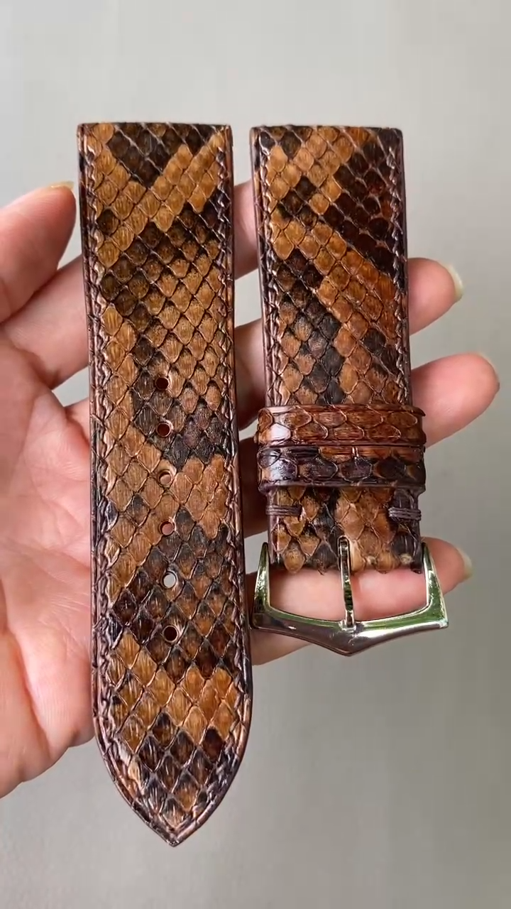 HANDMADE AND SHIPPING FROM VIETNAM GENUINE LEATHER SKIN WATCH STRAP BAND ALL SIZE customize your requirement I. DESCRIPTION Condition: 100 % HANDMADE, Suitable for any watches Color: Like in the pictures (can be a little bit different due to lighting condition) Material: - Surface: 100% Genuine python Leather - Inside: 100% Genuine Cowhide leather Size: Lugs: all size / Buckle: all size PLEASE WRITE THE SIZE OF THE LUG AND BUCKLE WHEN ORDERING, I WILL MAKE IT CORRECT - Long part : 120mm - Short Part: 80mm ( If you want to make extra longer or shorter than this length, please take note for me when you order) - Padding: 5 -2mm - Y ou can change another thread just note the stitch color for me Others: - Contact me via eBay Message only if you want larger quantity best price for wholesale - The color maybe a little different because of the flash light and the screen display, please understand. Note: I will mark it as gift or low value when ship it to you II. HANDLING & SHIPPING We ship by VIETNAM POST to Worldwide with Tracking number. Your order will be dispatched within 1-5 working day of receiving payment and you should expect to receive it from 10 to 35 days The very unfortunate event that your item is lost or damaged during post, then We are responsible and will issue either a full refund or replacement. III. WARRANTY & RETURN If you are not 100% satisfied with your purchase, you can return the product and get a full refund or exchange the product for another one, be it similar or not. Returns can only be accepted within 30 days of receipt. Refunds are not accepted if the product shows signs of use Return shipping fee will be charged from customers. IV. CONTACT US We have always been trying to provide the best service and reliable products for every customer. However, accident may happen sometimes. Could you please contact us to resolve any issue before leaving a Feedback. Any question please feel free to contact us by eBay message center. "Please don't leave negative feedback, We can solve any problem" THANH YOU! Have a nice day and enjoy your shopping !!!