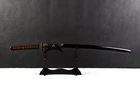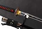 Product Parameter : Package Include: 1 sword + 1 bag + 1 certificate Item Number: LQ180608 Craft: Hadori-polishing , Clay tempered , Quenching, etc. Handle: Red Real rayskin + High grade Brass fittings plated with real gold/silver Saya: Black lacquered wood saya + real rayskin Koiguchi & Koijiri & kurigata: High grade yellow real OX Horn Overall Length: 103cm/40.6" Blade Length: 70cm/27.5'' Handle Length: 26cm/10.24'' Blade Widdth: 3.2cm/1.26'' Thickness: 0.7cm/0.28'' Bo-hi(blood groove): Yes(can be removed) Hamon: Handmade real hamon Hardness(HRC): 60 The Modern Style Polishing (Hadori Style Polishing 刃取) It is designed to highlight the aesthetics of the blade. In this style polishing, the hamon appears white against the black, shining steel and the mirror finished shinogi-ji. It is so aesthetic that it makes a blade perfect for display. The white pattern that looks like hamon is called "HADORI". It is not a true hamon, but it is designed by polisher along the hamon to exaggerate it. When you look at the blade under a proper light, you can see the true hamon under the hadori. With the modern polishing style, you can see the blades with aesthetically "made-up face". This polishing style was developed by a famous polisher in the early 20th century. This step is very time-consuming. The swordsman even had to polish the blade carefully for nearly a month. Clay Temper: To maximize both the cutting edge and the resilience of the sword spine, a technique of differential heat-treatment is used.The sword is painted with layers of clay before heating, providing a thin layer or none at all on the edge of the sword, ensuring quick cooling to maximize the hardening for the edge. A thicker layer of clay is applied to the rest of the blade, causing slower cooling. This creates softer, more resilient steel, allowing the blade to absorb shock without breaking. About T10 carbon steel: The best quality of high carbon steel is T10, the carbon content was 1.03%, and the element contains a small amount of chromium, molybdenum, vanadium, after heat treatment can reach HRc 58-60 hardness. Toughness is very good, but it is not resistant to rust. It is applied to traditional european-style hunting knife, large cutting knife and military dao. If you you have any questiones, please contact us through the eBay messaging system : ) Tsuba & Fuchi & Kashira & Habaki Saya Additional Service About us Delivery details Tsuba & Fuchi & Kashira & Habaki Alloy Tsuba Iron Tsuba ( extra $10) Brass Set ( extral $50 ) Alloy Fuchi & Kashira Habaki TSUKA-ITO & SAGEO Tsuka-ito is the wrapping of the tsuka and sageo (下緒 or 下げ緒) is a hanging cord that is passed through the hole in the kurigata (栗形) of a Japanese sword's saya. SAMEGAWA Samegawa(鮫皮)is the ray or shark skin wrapping of the tsuka (handle/hilt). Saya Please contact us before placing an order to see if there is any stock available, as well as any additional charges. OX Horn Saya Additional Service It's free for engraving English words, Chinese Characters and Japanese Kanji , etc. You need pay extral $20-30 for engraving patterns. Hamon We can add or remove the machine-made wavy hamon for free. Bo-hi ( Blood Groove) Usually thought be used for bloodletting only. It is also used to lighten the weight of the sword. We can add or remove Bo-hi for free Sharpness Most of our blades are sharp. We can also make the blade unsharpened for free if you require. Colored Blade If you want to change to a different color blade, please contact us before purchase. Matching Swords Set If you buy one katana, we can make a matching Wakizashi or Tanto for you. The price varies from different swords. Please contact us if you need make custom matching set. About us We have our own sword-casting factory. The factory is located in Longquan, a small town with a long history of sword-casting in China. Most of the famous Swords in China are made there. Rich raw materials, skilled technology, traditional sword casting technology from generation to generation. Manual production really takes a lot of time. We will prepare most products in advance ,and arrange delivery within about a week. However, sometimes the delivery time is delayed due to weather or raw materials,etc. we hope to get your understanding. Feel free to contact us to inquire about the status of your order. Each handmade sword is unique. Our swords are great for gifts or for your own collection. Our swordsmithing master makes every sword attentively, hope you can feel our sincerity. We will also give you the best customer service, any questions please feel free to contact us. Delivery details a) Import duties, taxes and charges are not included in the item price or shipping charges . These charges are the buyer’s responsibility. b) If you do not receive the package, or the package is damaged during transportation. We'll take care of it. Please feel free to buy. c) If it is mentioned in the product description that the package includes the sword bag or sword holder , the style will be random. The sword holder or sword bag on the ebay picture is the props we use for shooting. If you really like a style, please contact us before buying. d) If you have any problem after recieve the package (wrong size, wrong style, etc.). We always provide you with the best after-sales service. Please give us a chance to help you before you give us a bad feedback . Thank you very much!