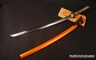Product Parameter : Number: HE1093 Construction: Kobuse Overall: 103cm/ 40.6 inch Blade: 70cm/ 27.5 inch Handle: 26 cm/ 10.24 inch Width: 3.2 cm/ 1.26 inch Thickness: 0.7cm/ 0.28 inch Blood groove: No bohi Tang(nakago): Full tang Hamon: Handmade real hamon Rayskin: Genuine shark rayskin Tsuba: Iron Scabbard: Yellow shiny wood saya Craft: Fully handmade, folded 15 times(32768 layers) , clay tempering, water quenching, hand-polishing, etc. Fittings: High quality Brass Kobuse: In addition to folding the steel, high quality Japanese swords are also composed of various distinct sections of different types of steel. The vast majority of modern katana and wakizashi are composed of a single steel. The kobuse type is made using two steels, which are called hagane (edge steel) and shingane (core steel). Steel of different materials is forged and welded together to hammer the basic shape of the sword. This allows the overall blade to have a higher toughness and absorb a lot of impact. Reducing the possibility of breaking or bending to some extent. Makes the blade not only has high hardness, but also has super toughness. Damascus Folded Steel: In the forging process , the most useful process is the folding, where the metals are forge welded, folded, and welded again, as many as 24 times(15 times is the best). The folding removes impurities and helps even out the carbon content, while the alternating layers combine hardness with ductility to greatly enhance the toughness. The less impurities, the harder and sharper the blade will be. We have done cutting tests on the blades. it can cut bamboo(young bamboo tree), grass mattings and slice paper(The blade should be tilted at 45 degrees). Clay Temper: To maximize both the cutting edge and the resilience of the sword spine, a technique of differential heat-treatment is used. In this specific process, referred to as differential hardening or differential quenching, the sword is painted with layers of clay before heating, providing a thin layer or none at all on the edge of the sword, ensuring quick cooling to maximize the hardening for the edge. A thicker layer of clay is applied to the rest of the blade, causing slower cooling. This creates softer, more resilient steel, allowing the blade to absorb shock without breaking. Tsuba & Fuchi & Kashira & Habaki Saya Additional Service About us Delivery details Tsuba & Fuchi & Kashira & Habaki Alloy Tsuba Iron Tsuba ( extra $10) Brass Set ( extral $50 ) Alloy Fuchi & Kashira Habaki TSUKA-ITO & SAGEO Tsuka-ito is the wrapping of the tsuka and sageo (下緒 or 下げ緒) is a hanging cord that is passed through the hole in the kurigata (栗形) of a Japanese sword's saya. SAMEGAWA Samegawa(鮫皮)is the ray or shark skin wrapping of the tsuka (handle/hilt). Saya Please contact us before placing an order to see if there is any stock available, as well as any additional charges. OX Horn Saya Additional Service It's free for engraving English words, Chinese Characters and Japanese Kanji , etc. You need pay extral $20-30 for engraving patterns. Hamon We can add or remove the machine-made wavy hamon for free. Bo-hi ( Blood Groove) Usually thought be used for bloodletting only. It is also used to lighten the weight of the sword. We can add or remove Bo-hi for free Sharpness Most of our blades are sharp. We can also make the blade unsharpened for free if you require. Colored Blade If you want to change to a different color blade, please contact us before purchase. Matching Swords Set If you buy one katana, we can make a matching Wakizashi or Tanto for you. The price varies from different swords. Please contact us if you need make custom matching set. About us We have our own sword-casting factory. The factory is located in Longquan, a small town with a long history of sword-casting in China. Most of the famous Swords in China are made there. Rich raw materials, skilled technology, traditional sword casting technology from generation to generation. Manual production really takes a lot of time. We will prepare most products in advance ,and arrange delivery within about a week. However, sometimes the delivery time is delayed due to weather or raw materials,etc. we hope to get your understanding. Feel free to contact us to inquire about the status of your order. Each handmade sword is unique. Our swords are great for gifts or for your own collection. Our swordsmithing master makes every sword attentively, hope you can feel our sincerity. We will also give you the best customer service, any questions please feel free to contact us. Delivery details a) Import duties, taxes and charges are not included in the item price or shipping charges . These charges are the buyer’s responsibility. b) If you do not receive the package, or the package is damaged during transportation. We'll take care of it. Please feel free to buy. c) If it is mentioned in the product description that the package includes the sword bag or sword holder , the style will be random. The sword holder or sword bag on the ebay picture is the props we use for shooting. If you really like a style, please contact us before buying. d) If you have any problem after recieve the package (wrong size, wrong style, etc.). We always provide you with the best after-sales service. Please give us a chance to help you before you give us a bad feedback . Thank you very much!