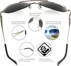 Premium Military Style Classic Aviator Sunglasses, Polarized, 100% UV protection for Men Women [Polarized lens] - Specialized multi-layer lens designed to filter and block over of glare - Polarized lenses block out intense horizontal reflections (glare) by having a vertically oriented filter layer embedded in the lens, providing maximum comfort and improved visibility. These lenses are tough, lightweight, scratch resistant, and have high optical clarity (distortion-free, clear vision), making them an excellent choice for general outdoor and water sports activities. [Ultraviolet light protection] - All lenses are UV400 rated, which can block 99%- 100% of UVA and UVB radiation. UV400-rated sunglasses are essential to protecting your eyes against long-term UV light damage and keeping your eyes healthy when out and about. [Duroframe metallic alloy frame] - Made with ultra-lightweight yet strong and durable Duroframe Metallic Alloy. It comes with spring-loaded hinged legs and adjustable silicon nose pads, allowing maximum comfort and flexibility. [Perfect all-rounder] - Being polarized and having 400UV protection makes these sunglasses the ideal choice for outdoor sports and activities such as driving, fishing, skiing, traveling, hiking, and boating. They are suitable as a high-fashion accessory and daily wear all round. They are also gift-packaged ready, making them an excellent yet practical gift idea for friends and family! [100% risk-free purchase] - All Sunglasses come with a 1- satisfaction on frames and lenses and a 30 Day Happiness SATISFACTION GUARANTEE. So, if you are not completely happy with your purchase for whatever reason, let us know, and we'll take care of you. Premium Military Style Classic Aviator Sunglasses Polarized and 100% UV protection - protect your eyes without compromising on style, comfort and safety. Polarized and 100% UV protection sunglasses help: - Reduce eyestrain, no tired eyes after a full day in the sun. - Reduce reflections and glare (especially important for those with sensitive eyes or post-surgery recovery) - Protect your eyes against harmful UV rays, minimizing damage to your eyesight in the long run. - Improve contrast and visual clarity Measurements: - Overall Width: 152mm (Large) / 140mm (Medium) - Lens Width: 62mm (Large) / 58mm (Medium) - Lens Height: 50mm (Large) / 46mm (Medium) - Temple Length: 130mm - Bridge Width: 14mm Large (62mm): Suitable for average - large male, or female for a oversized fit Medium (52mm): Suitable for the average male, or female Here are 5 reasons you're going to love your Military Style Classic Aviators: 1. It blocks 99-100% of both UVA and UVB harmful radiation 2. It has a special polarized filter to block over of glare 3. Classic unisex design (So you can protect your eyes while looking stylish) 4. Made of lightweight yet durable metallic alloy with spring-loaded hinges ensuring maximum comfort. 5. Backed by a happiness SATISFACTION GUARANTEE and a 1- Order yours now because you risk nothing! Bonus: All sunglasses come gift packaged ready, making these sunglasses an excellent yet practical gift idea for your active friends and family! Order your Premium Military Style Classic Aviator Sunglasses and join thousands of other satisfied customers who love the difference!