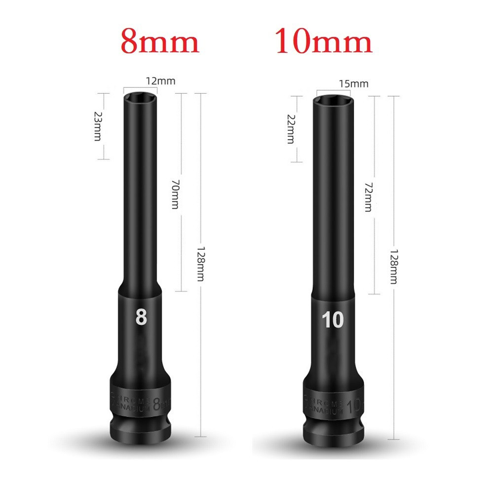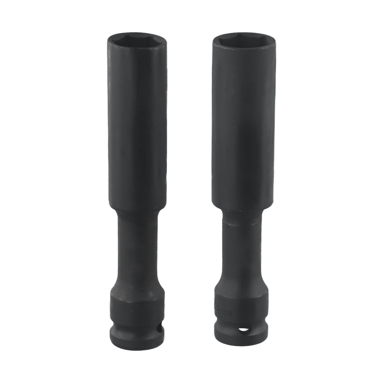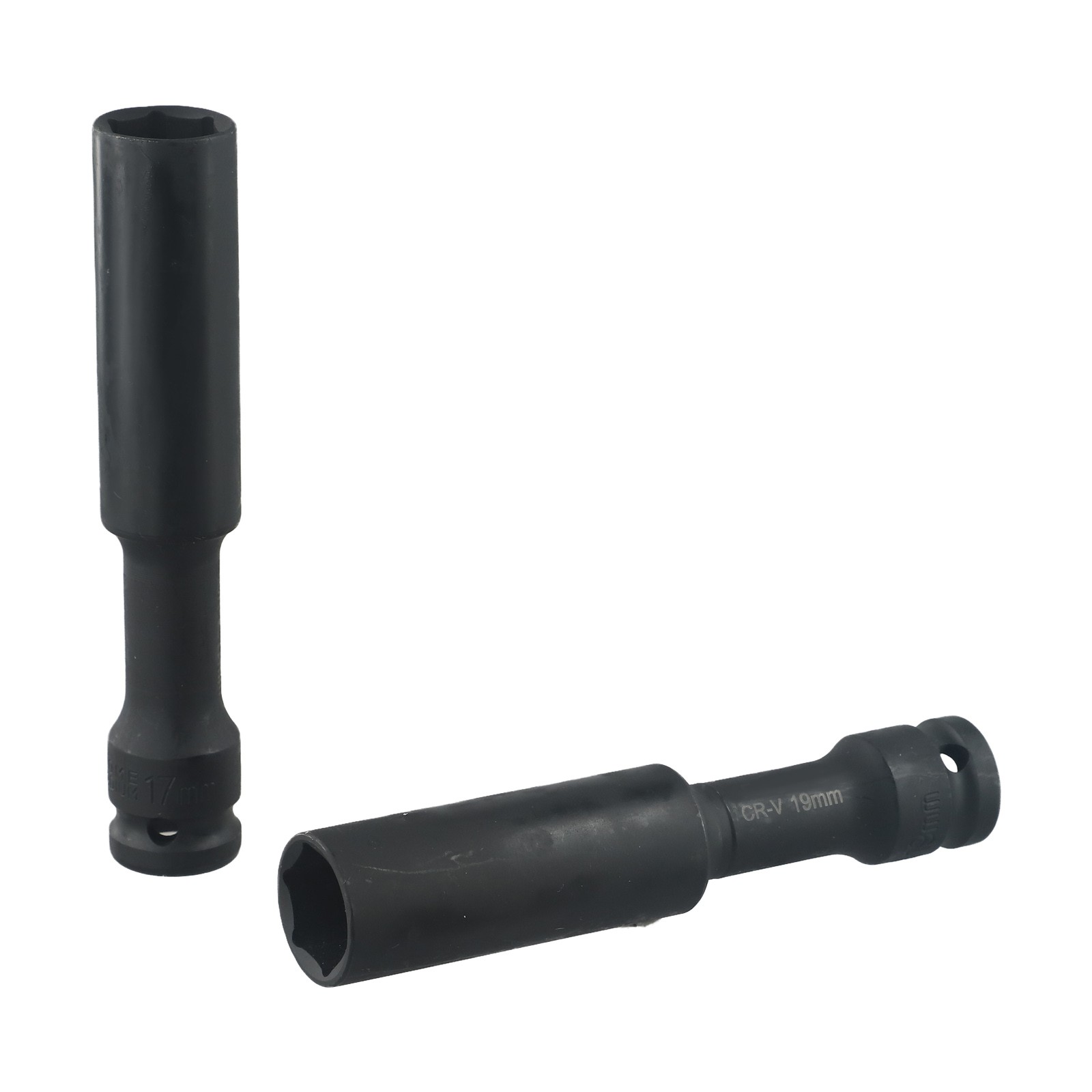 Beschreibung Features: *Various Head Diameters:This socket set includes 8mm, 10mm, 12mm, 13mm, 14mm, 17mm, and 19mm head diameters, allowing compatibility with a wide range of fasteners. *Sturdy 1/2inch Drive:With a 1/2 inch drive, this socket set provides a reliable connection between the socket and your wrench, enabling efficient torque transmission. *Extended Reach:Measuring at 128mm, these deep sockets offer extended reach, making it easier to access fasteners in hard-to-reach areas, providing convenience and versatility. *Thin-wall Design:Crafted as a thin wall sleeve, this socket set is specifically designed for use in tight spaces and narrow passages, easy access and maneuverability. * Construction:Made from chromium-vanadium steel, built to last. They offer exceptional strength and durability, long-lasting performance and resistance to wear and tear. *Wide Applications:Perfect for electric wrench, bending rod, ratchet wrench and more, making it a must-have tool for you. Specifications: *Product Name:Thin Wall Socket *Material:Chromium-vanadium steel *Size:Approx.8mm, 10mm, 12mm, 13mm, 14mm, 17mm, 19mm(Head Diameter) *Total Length:About 128 mm *Handle Diameter:About 1/2 inch(12.5mm) *Color:Black *Options:8+10,8+12,8+13,8+14,12+14,13+14,17+19(Optional) Package Content: 2* Sockets Note: 1. The real color of the item may be slightly different from the pictures shown on website caused by many factors such as brightness of your monitor and light brightness. 2. Please allow slight manual measurement deviation for the data. POLICES Shipping Payment WARRANTY We only ship to confirmed ebay Order addresses. Please comfirm that your Order address is in line with your shipping address. Please kindly note that the c ombined shipping is not provided because the shipping fee is calculated by weight. Also, the each additional item means exactly the the same color and size. It takes about 7 -15 working days to US; about 10-30 working days to other countries. Transit time may be a little delayed because of the bad weather and customs inspection . If you do not receive your item within 30 working days since payment finished, please contact us immediately for further assistance. Payment must be completed within 5 days. If you have any problems about payment, please contact us via ebay message. We strive for 100% customer satisfaction! Positive Feedback is very important to us. If you have any questions, p lease feel free to contact us via "Ask seller a question" . We will reply your email within 24 working hours.