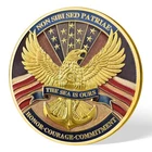 Item Details Description : Celebrate the strength, honor, and courage of the United States Navy with this stunning challenge coin. The front features a striking gold anchor, symbolizing the steadfastness and power of the Navy, surrounded by a dynamic anchor chain against a backdrop of the American flag and turbulent waves. This design highlights the Navy's unyielding commitment to protecting the nation in all conditions. On the reverse , an eagle with outstretched wings clutches the iconic anchor, representing both freedom and naval might. Above the eagle is the Latin phrase "NON SIBI SED PATRIAE" meaning "Not for self, but for country," capturing the Navy's selfless dedication. Below, the words "THE SEA IS OURS" and the Navy's core values "HONOR, COURAGE, COMMITMENT" underscore the principles that guide these brave service members. This challenge coin is the perfect gift for Navy veterans , active duty sailors , and Navy family members to honor their service or as a collectible for military enthusiasts . Show your pride for the United States Navy with this beautifully crafted coin! Dimensions : 1.57''diameter, 0.12''thickness Material : Zinc alloy with gold plating This coin is a great keepsake to commemorate the legacy and honor of the US Navy. Order yours today and give a gift that honors the dedication and bravery of our nation’s finest! Amazing Treasure Still wondering what to add in a collection? A special and long-last memory gift? Or the connection between you and your most important one. You can always find your own treasure here. Packing Each coin will be packed up individually with a plastic case suit in opp bag. Shipping We'll start shipping as soon as possible within 2 business day normally. Tracking will be available after. Feedback We try to make sure ALL customers are satisfied with our services, if you do, a POSITIVE feedback is appreciated, thank you very much. And we always leaving a positive one for customer when item is delivered successfully. Contact Us Feel free to contact us at any time, we're happy to help. You can reach us by eBay or E-mail. Have a nice day!