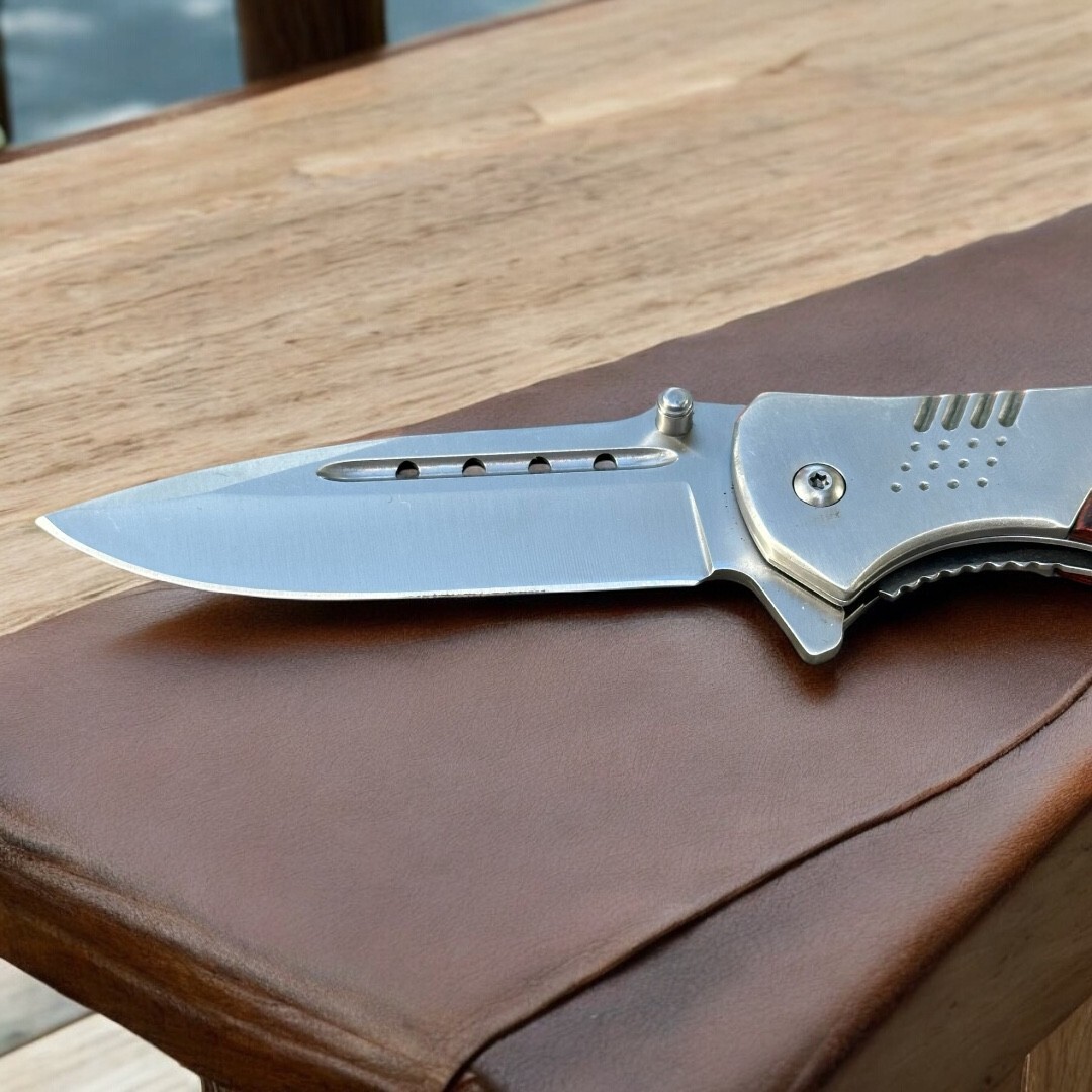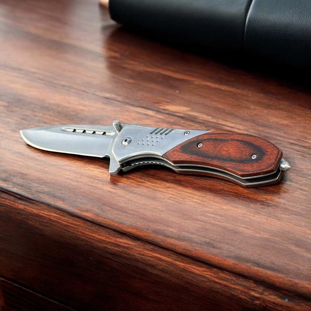 Classic style meets practical function with this Kexmo folding pocket knife , featuring a smooth stainless blade and polished wood inlay handle. Whether youβre outdoors, working on daily tasks, or adding to your collection, this knife delivers timeless utility. π² Handle: Elegant wood grain inlay with brushed stainless steel frame πͺ Blade Type: Drop point β ideal for slicing, everyday cuts, and general utility π§· Deployment: Thumb stud and flipper tab for smooth, one-handed opening π Lock Type: Secure liner lock mechanism to keep the blade safely open during use π§² Compact Design: Easily fits into pockets, toolboxes, or hiking gear π οΈ Additional Feature: Glass breaker end cap for emergency situations This Kexmo knife combines style, reliability, and performance in one sleek design β a standout for anyone who values quality craftsmanship. π¦ Brand new, ships fast and well-packaged π Great gift idea for outdoorsmen, collectors, or everyday carry fans Note: Buyer must be 18 years or older. Please follow all local laws regarding knife purchases.
