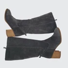 These Blondo knee-high boots offer protection and style with their waterproof suede design. The gray exterior pairs well with various outfits, while the durable construction ensures longevity. A reliable choice for those seeking both fashion and functionality in their footwear. • Side zippers for easy wear • Stacked heel for added height • Smooth interior lining • Rubber sole for grip • Elegant stitching detail Both boots have some peeling to the inner part of the upper boot. Features: • China Size: Womens 8M Condition: Pre-Owned Fair Excellent preowned condition from a pet and smoke free home. All shoes are cleaned and sanitized prior to selling. There is peeling to the inner part of the upper boot. Please refer to pictures for condition. All offers considered!