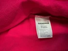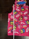 This limited edition Pink Hoodie Vest by Kid Sugarman is a must-have for any stylish young girl. The sleeveless design and full zip closure make it perfect for layering over any outfit. The XL size and duck figure detail add a touch of fun to this trendy piece. Made from a blend of polyester and cotton, the fabric is soft and comfortable, with a spandex base for added stretch. The 95% cotton and 5% spandex fabric type ensures a durable and long-lasting garment. It has a little stain at the bottom of the front vest, it is barely visible . Overall it is in a good condition.