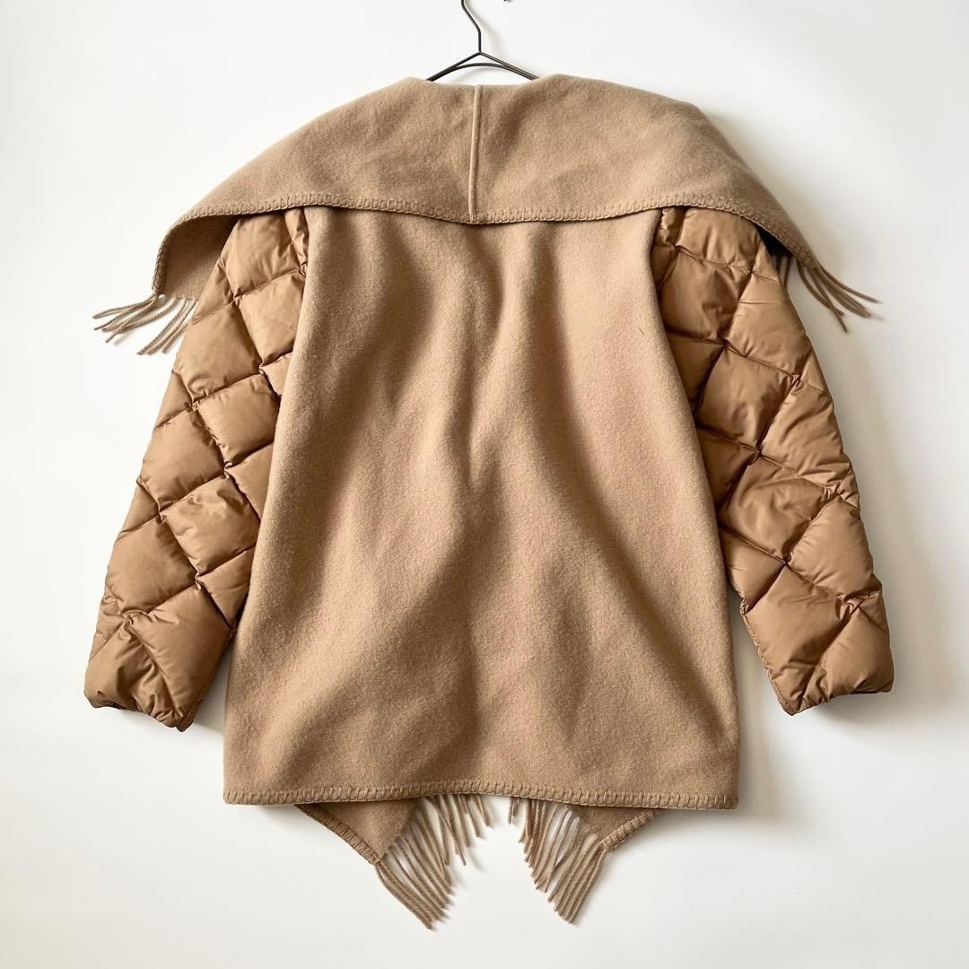 Pre-owned MONCLER sleeve-down cape down coat with fringe detailing, camel and brown, size M. Cape coat/poncho. Description Item No 293 Brand MONCLER Item Down jacket Model Number H20933G00027 Gender Women Notation Color Brown Color Brown Material wool/Down, feather Notation Size M Size(CM) Back Length:74cm Size(Inch) Back Length:29.1inch Accessory None Production features Items MONCLER Cape Down Coat with Sleeves, Fringe, 100% Wool, Camel, Brown, Size M, H20933G00027 Size M size (equivalent) Shoulder width: 17.3" Chest width 21.3" Sleeve Length 24.4" Length 29.1" ○Accessories None (Hanger not included) Status There is some staining on the sleeves ○Color Camel Brown brown *Please note that the color of the actual product may differ depending on the photo shooting environment and the device you are using. ○Material Sleeves: 100% polyester Body: 100% wool Sleeve lining: 100% polyester Filling: 90% down, 10% feather