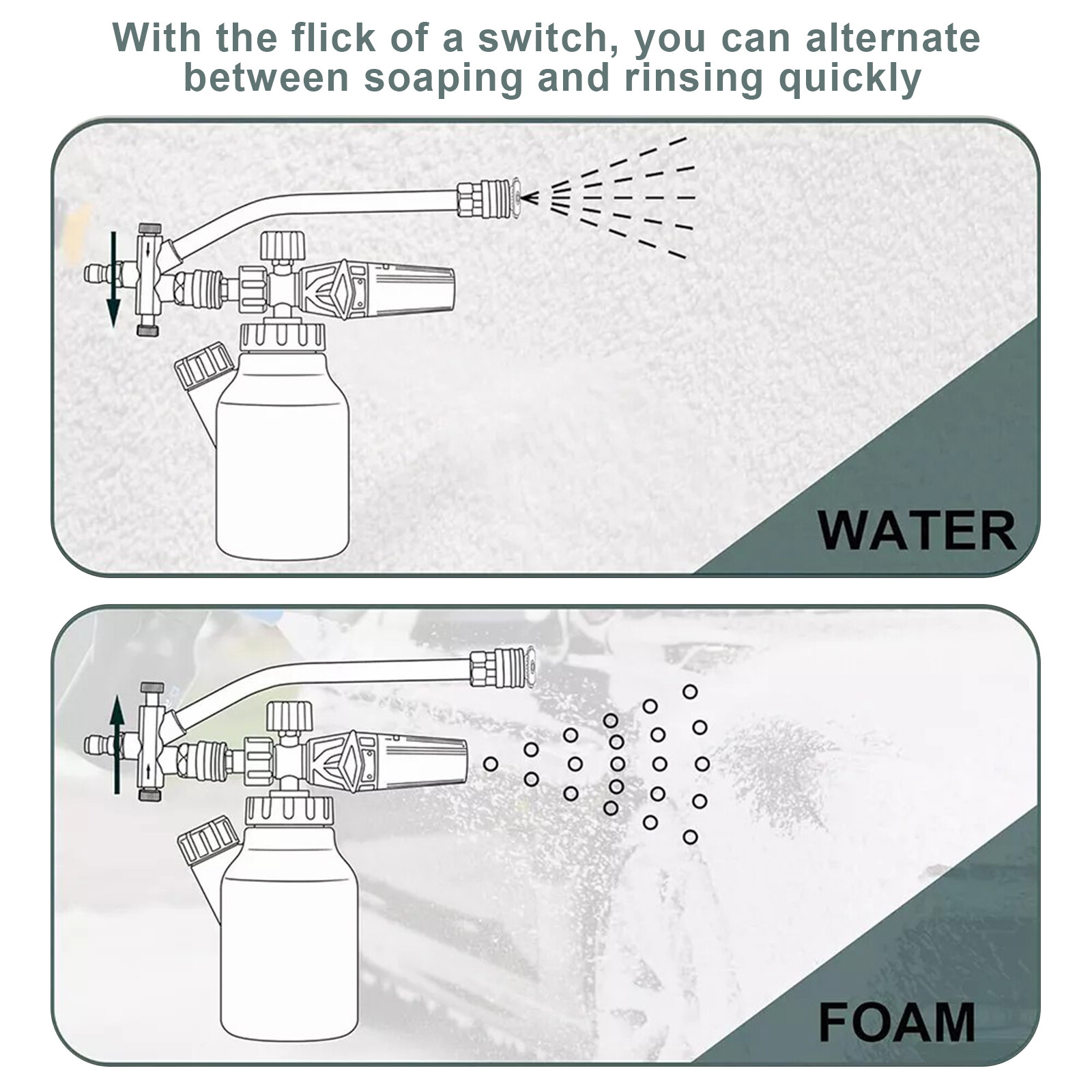 Pressure Washer Double Tip Foam Cannon Connector pressure Washer Attachment US! Features 1. Dual connector design: this high-pressure washer foam monitor accessory has two different connection ends, one is longer for the washer nozzle, and the other is shorter for the snow foam tool. Ensure smooth water flow during use. Even when connected to a foam dispenser, you can use a nozzle. 2. High quality materials: The electric cleaning extension rod of the high-pressure cleaning machine is made of stainless steel material, with excellent quality. It has resistance to damage and durability, enough to make you feel at ease when using it. 3. Two way shuttle valve: The two way shuttle valve is easy to switch between the foam tool and the tip task of the pressure washer, without continuous disassembly or replacement. It reduces the hassle of replacing accessories for different cleaning tasks, making it a universal and convenient tool for any cleaning program. 4. Wide compatibility and quick connection: equipped with a 1/4-inch quick connector, suitable for most brands of high-pressure cleaning guns, soap car washing foam monitors and high-pressure cleaning nozzles. Simplify the connection steps to achieve faster applications, allowing you to easily enjoy the fun of cleaning. 5. Widely applicable: This tool is suitable for cleaning motorcycles, cars, trucks SUV、 Roof, lane, floor, and windows. Customize your cleaning experience to meet your specific needs, whether you're looking for gentle rinse solutions or powerful stain removers. Specifications: Product name: dual-use foam spray bar Material: Stainless steel Size: 26 x 7 cm/10.4 x 2.76 inches Packaging size: 30 * 10 * 4 cm Color: Silver Weight: 398 grams Package Include: 1x Dual purpose foam spray bar Features 1. Dual connector design: this high-pressure washer foam monitor accessory has two different connection ends, one is longer for the washer nozzle, and the other is shorter for the snow foam tool. Ensure smooth water flow during use. Even when connected to a foam dispenser, you can use a nozzle. 2. High quality materials: The electric cleaning extension rod of the high-pressure cleaning machine is made of stainless steel material, with excellent quality. It has resistance to damage and durability, enough to make you feel at ease when using it. 3. Two way shuttle valve: The two way shuttle valve is easy to switch between the foam tool and the tip task of the pressure washer, without continuous disassembly or replacement. It reduces the hassle of replacing accessories for different cleaning tasks, making it a universal and convenient tool for any cleaning program. 4. Wide compatibility and quick connection: equipped with a 1/4-inch quick connector, suitable for most brands of high-pressure cleaning guns, soap car washing foam monitors and high-pressure cleaning nozzles. Simplify the connection steps to achieve faster applications, allowing you to easily enjoy the fun of cleaning. 5. Widely applicable: This tool is suitable for cleaning motorcycles, cars, trucks SUV、 Roof, lane, floor, and windows. Customize your cleaning experience to meet your specific needs, whether you're looking for gentle rinse solutions or powerful stain removers. Specifications: Product name: dual-use foam spray bar Material: Stainless steel Size: 26 x 7 cm/10.4 x 2.76 inches Packaging size: 30 * 10 * 4 cm Color: Silver Weight: 398 grams Package Include: 1x Dual purpose foam spray bar