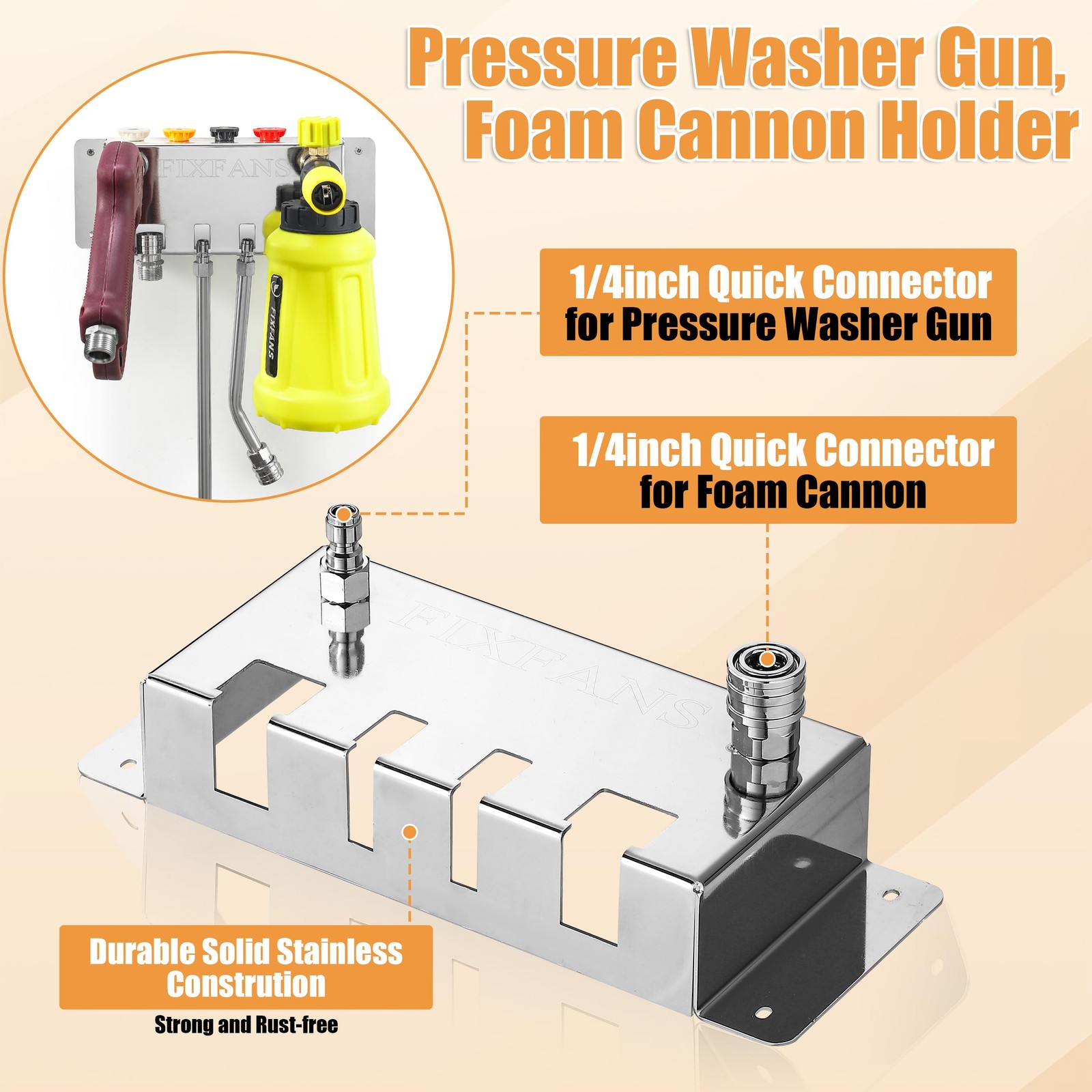 This holder is a game-changer for keeping my pressure washer gear neat and within reach! The wall-mount design saves so much space, and the quick-connect fittings make storing accessories a breeze. No more searching for lost parts—everything stays organized and ready for my next cleaning session. Highly recommend for anyone who wants a tidy, efficient setup!