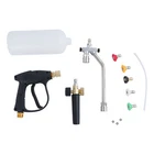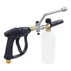 Pressure Washer Gun Pressure Washer Kit Pressure Washer Gun Replaceable Nozzles Description This pressure washer gun stands out for its excellent functionality and user-centric design. It provides multiple ways to customize the cleaning process, from adjustable foam to various spray angles. The device's ability to handle different temperatures and pressures ensures its effectiveness across a wide range of cleaning tasks. Whether for home or professional use, it offers an efficient and flexible solution, making it a reliable choice for those who seeking an excellent cleaning experience. Key Features Build to Last: The product is made of premium aluminum, copper, stainless steel and PA with advanced technologies, which is rust- resistant, wear-resistant and not easy to deform, ensuring a long-term service life. Versatile Function: Equipped with 5 replaceable nozzles featuring spray angles of 0°, 15°, 25°, 40°, and 65° (where 65° serves as the foam nozzle), this comprehensive product enables you to switch between a concentrated jet for stubborn stains in tight spaces and a wider spray for covering large surfaces, making it adaptable to an array of cleaning tasks, from detailed car wheel cleaning to broad patio rinsing. Two-in-one: This product seamlessly integrates foam and water spraying functions. Through a simple valve, easily switch between high-pressure foam and water to improve your cleaning efficiency. The dual-connection design provides versatility and convenience in a streamlined device. Adjustable Design: The foam amount can be precisely adjusted with a simple turn of a knob("+" is increase and "-" is reduce), providing remarkable flexibility. This user-friendly design caters to a wide range of cleaning scenarios, eliminating the need for multiple cleaning tools. It not only maximizes cleaning efficiency but also helps save on cleaning agent consumption, making it an economical choice in the long run. Ample Capacity: Boasting a generous 0.22 gal bottle capacity, it minimizes the need for frequent refills, which allows you to focus on the task at hand without the constant interruption of having to stop and refill the bottle. Safe and Secure : Operating at a working pressure of 2174PSI strikes a balance between efficiency and safety. It ensures that the cleaning process is effective enough to remove dirt and stains without causing damage to the surface being cleaned or putting excessive stress on the tool itself. Temperature Resistance: With the capability to withstand a maximum temperature of 140°F, it opens up the option of using warm water, which can significantly improve the cleaning performance, as it has the ability to dissolve grease, oil, and other stubborn substances more effectively than cold water alone. High-Pressure Capability: Featuring an impressive maximum pressure of 4350PSI, it packs a powerful punch, which allows it to tackle even the most challenging cleaning tasks with ease. Whether it's removing years of built-up dirt and moss from stone pathways or blasting away industrial-grade grime from factory machinery, this cleaning tool has the strength to get the job done. Portable: It weighs only 2.93 lbs and its size is relatively moderate, so you can easily carry it without taking up too much space and effort to satisfy your needs at different places. Buy with Confidence: We stand behind all our guests and look forward to assisting you with your purchase. It is our pleasure to answer your confusion and questions. Details Sealing Rings: They offer excellent sealing performance, effectively preventing water leakage at the connections of the water gun. Anti-slip Connection Part: It features textured surfaces, allowing you to easily and firmly grip it when connecting or disconnecting components. Application It is suitable for cars, motorcycles, patios, driveways, garages, exterior walls of houses, factories, warehouses, etc. It can also be used to clean floors, windows, garden furniture, grills, outdoor statues, and tools like shovels and rakes. Specification Material: Aluminum, Copper, Stainless Steel, PA Color: Black+Silver Replaceable Nozzles: 5 Spray Angle: 0°, 15°, 25°, 40°, 65°(65 ° is Foam Nozzle) Bottle Capacity: 1L/0.22Gal Foam Amount Adjustable: Yes Max Temperature: 60°C/140°F Max Pressure: 300bar/4350PSI Working Pressure: 150bar/2174PSI Water Gun Head: 1/4" Water Gun Length: 17cm/6.69in Water Gun Height: 17cm/6.69in Connection End Inner Diameter: 14mm/0.55in Spray Pipe Length: 270mm/10.62in Spray Pipe Height(at the Connection Part): 50mm/1.96in Bottle Mouth Diameter: 26mm/1.02in Bottle Diameter: 85mm/3.34in Bottle Height: 21cm/8.27in Height from Knob to Bottle Bottom: 28cm/11.02in Package Size: 27*25*16cm/10.63*9.84*6.3in Gross Weight: 1.4kg/3.09lbs Net Weight: 1.33kg/2.93lbs Package Included 1* Pressure Washer Gun 1* Bottle 5* Nozzles Other Accessories for Assembly Notes Please check the product size carefully before purchasing. The water pressure connected to the spray head should be within its rated range. Please note that the foam is not included in the bottle. Please do not aim the spray head at people. Please allow the slight color difference caused by the shooting light and 1-3 cm error due to manual measurement, and make sure you do not mind before ordering. Payment Delivery details Terms of sales About us Contact us Payment We accept ebay payment 。 Fees such as import duties, taxes are not included in the item price or shipping costs. These charges are the buyer's responsibility. Delivery details Shipping: 2-9 working days to: USA Terms of sales We maintain high standards of excellence and strive for hundred percent customer satisfaction. Feedback is very important to us. We hope that you contact us immediately before you give neutral or negative feedback, so that we can address your concerns. It is impossible to address issues if we do not know about them! About us Your satis faction is our ultimate goal. We work hard to earn your t